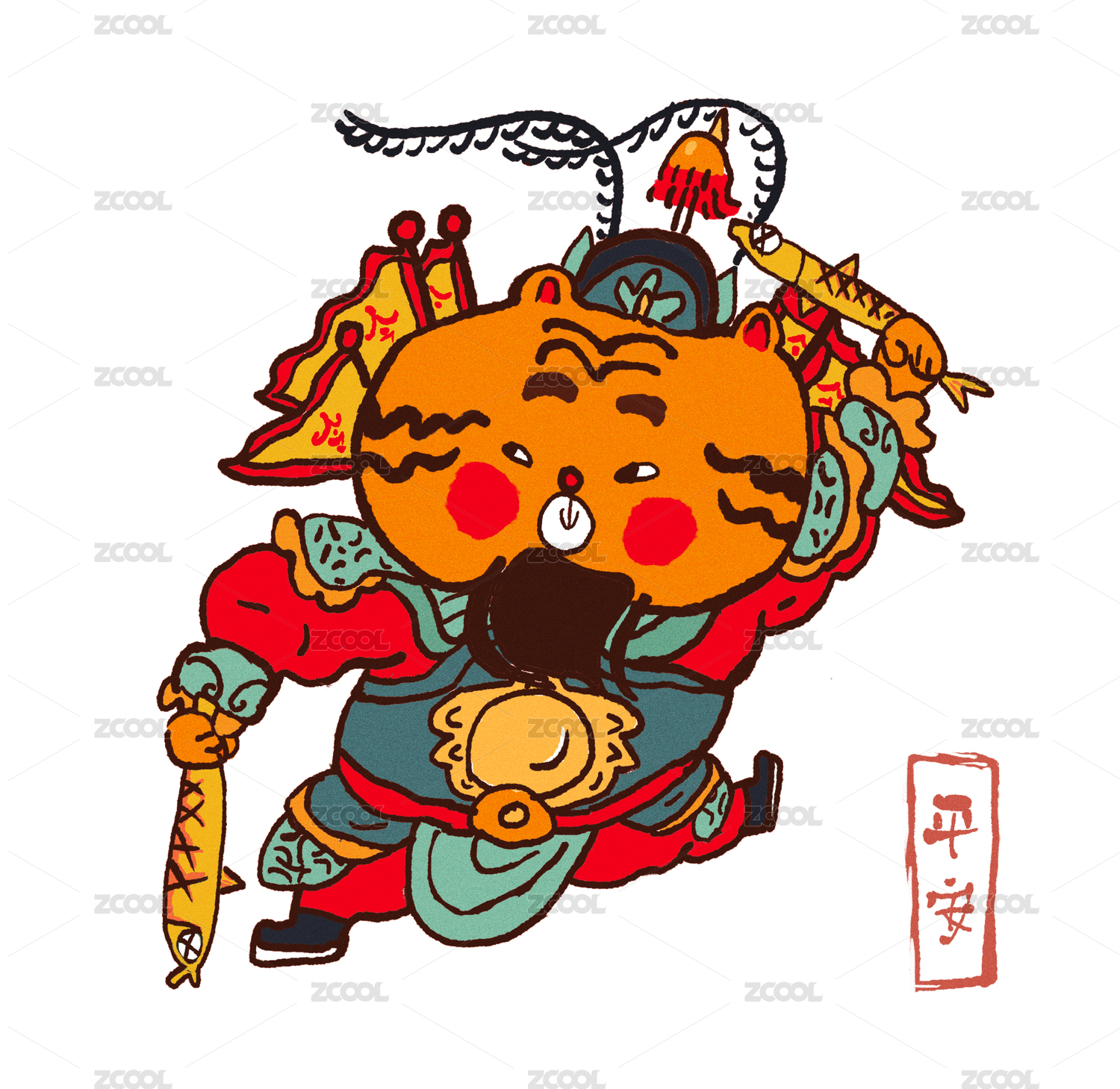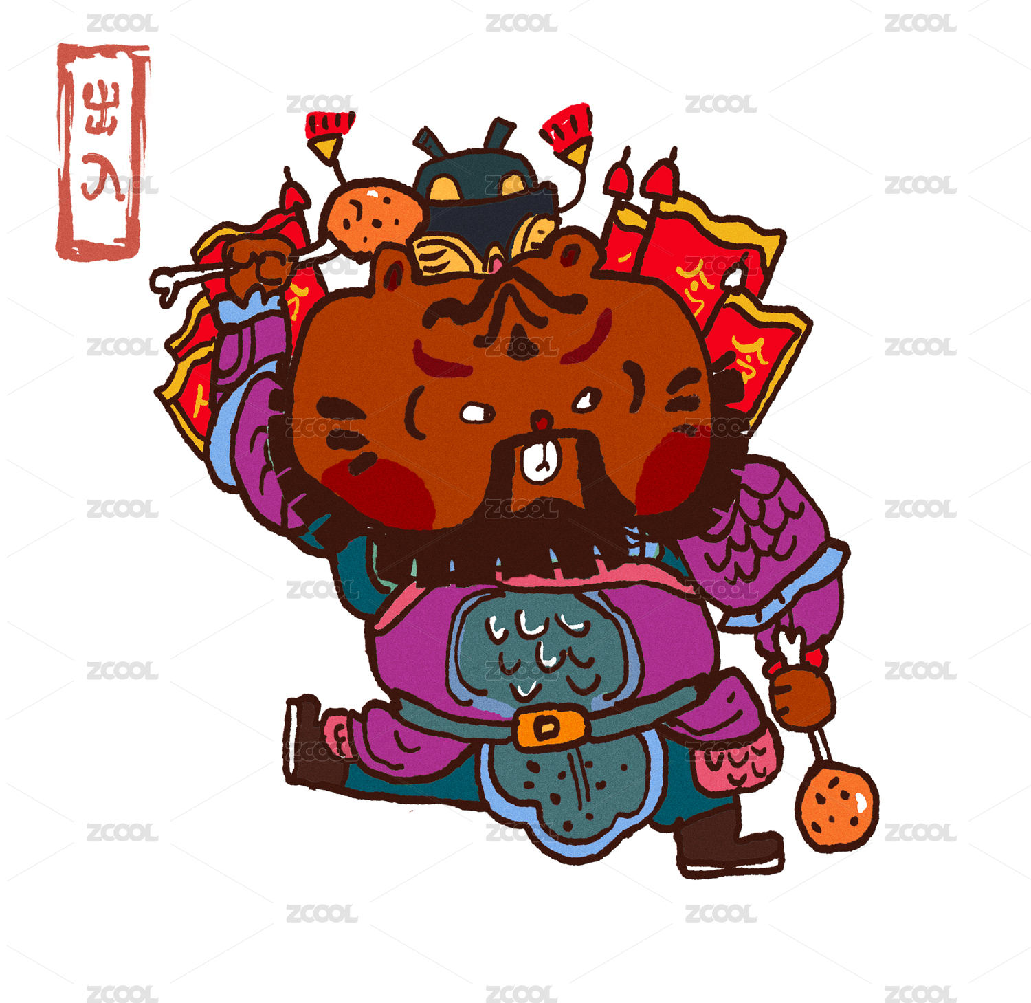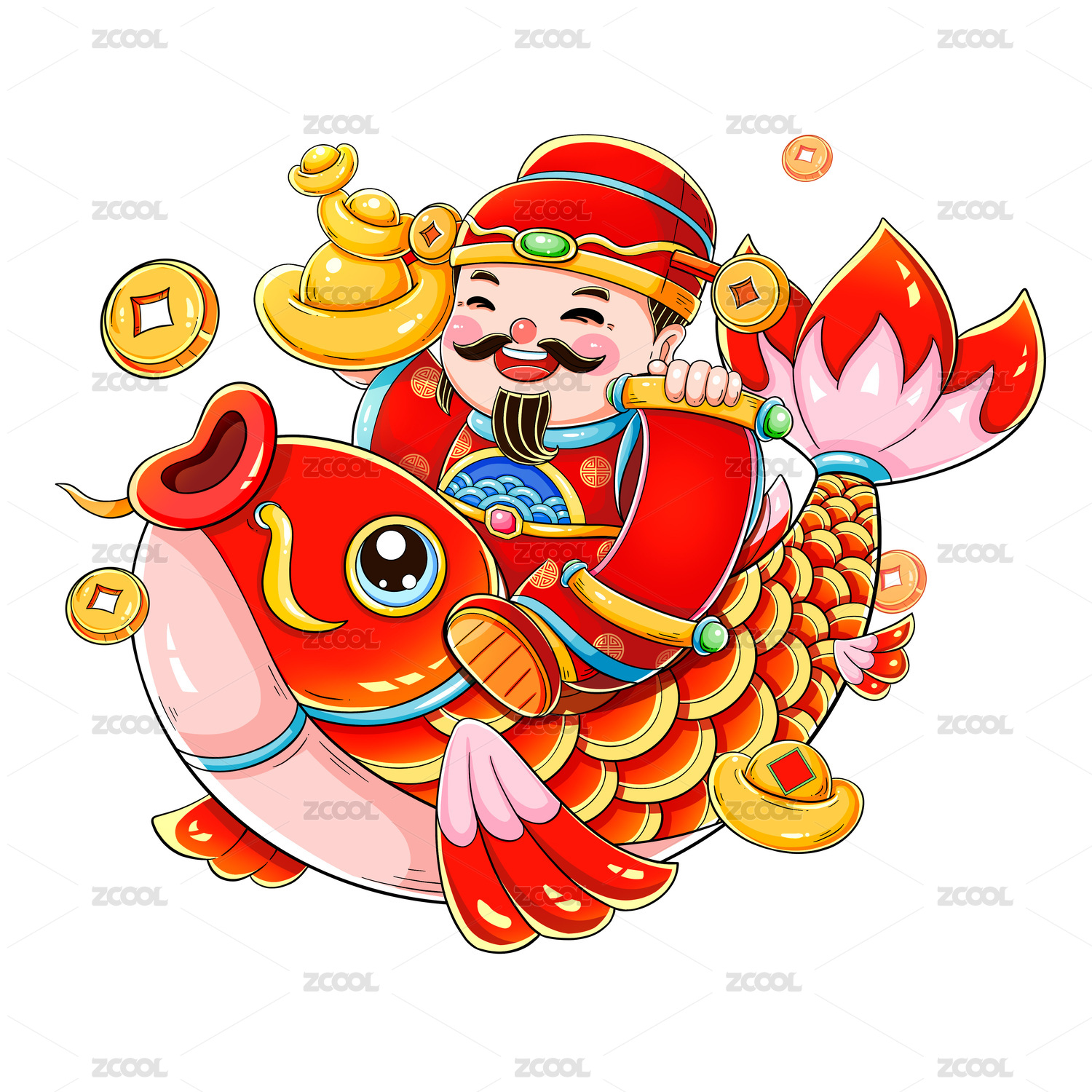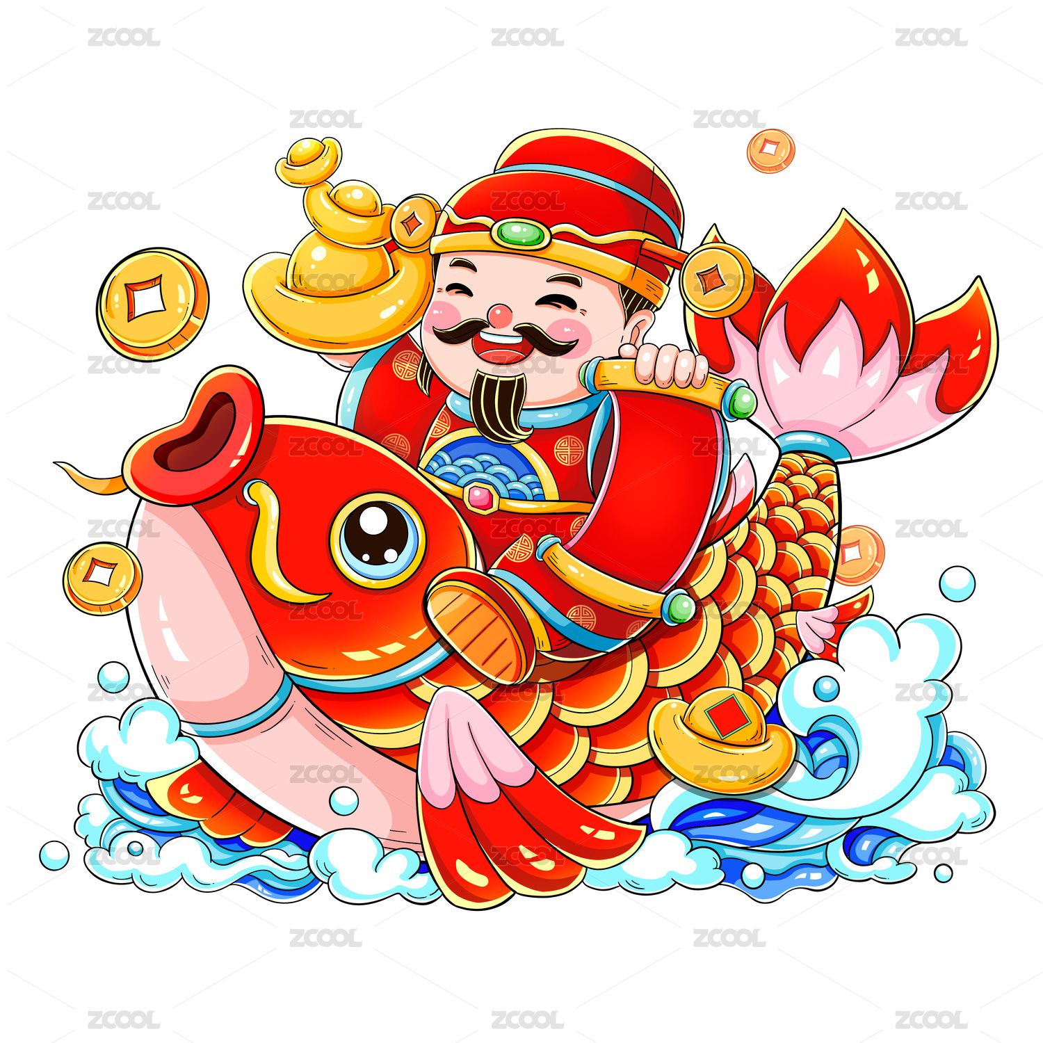喜慶春節(jié)新年卡通錦鯉財(cái)神無(wú)浪插畫