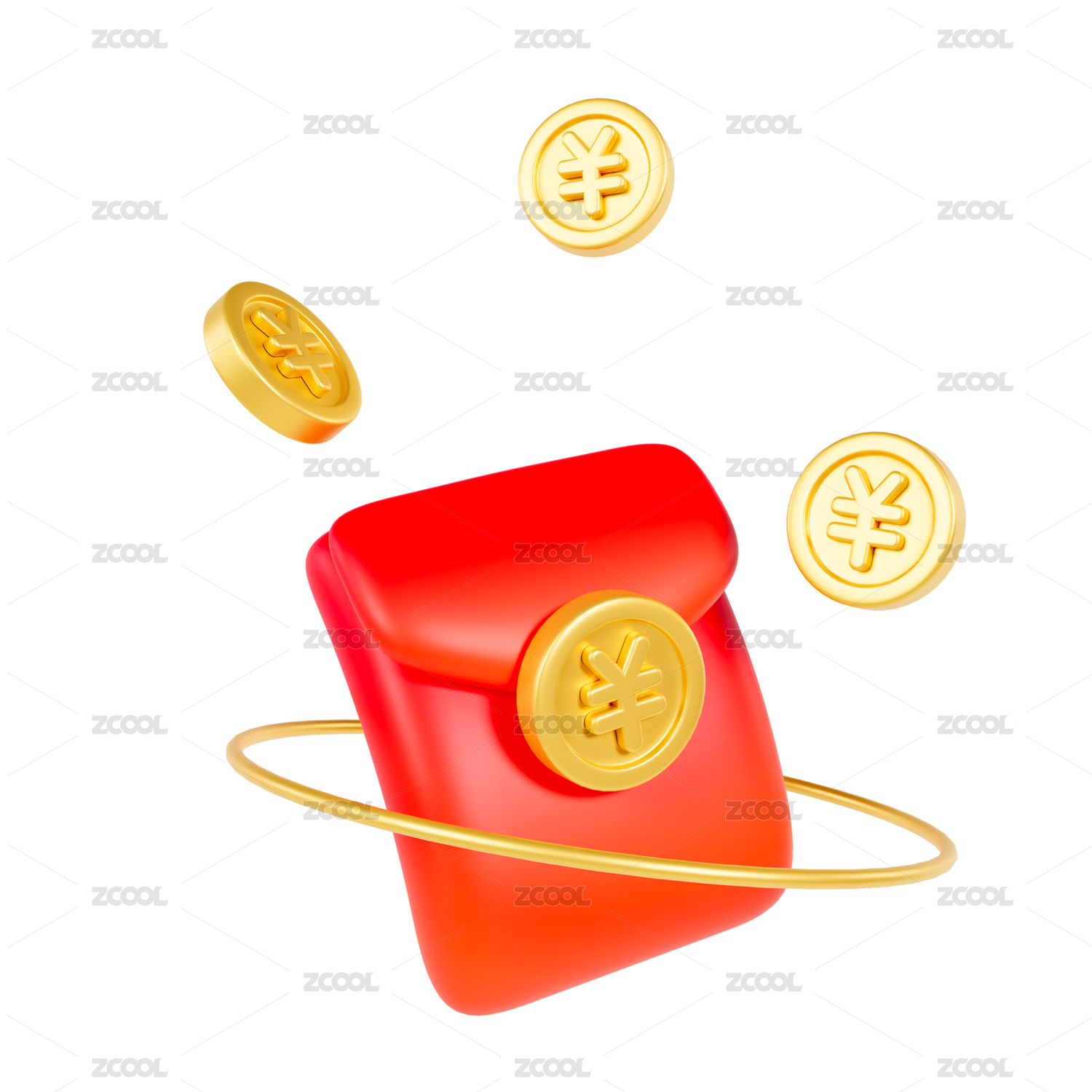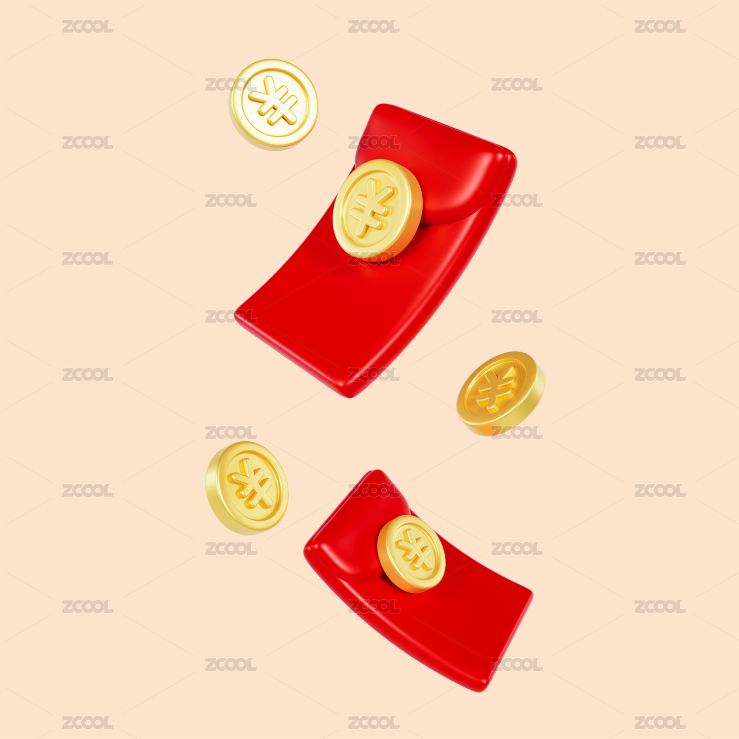 3D渲染的春節(jié)新年卡通紅包金幣電商促銷購(gòu)