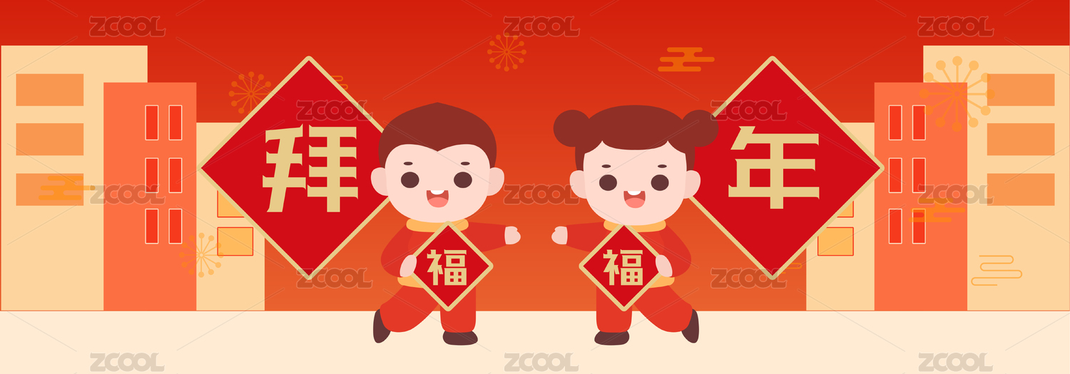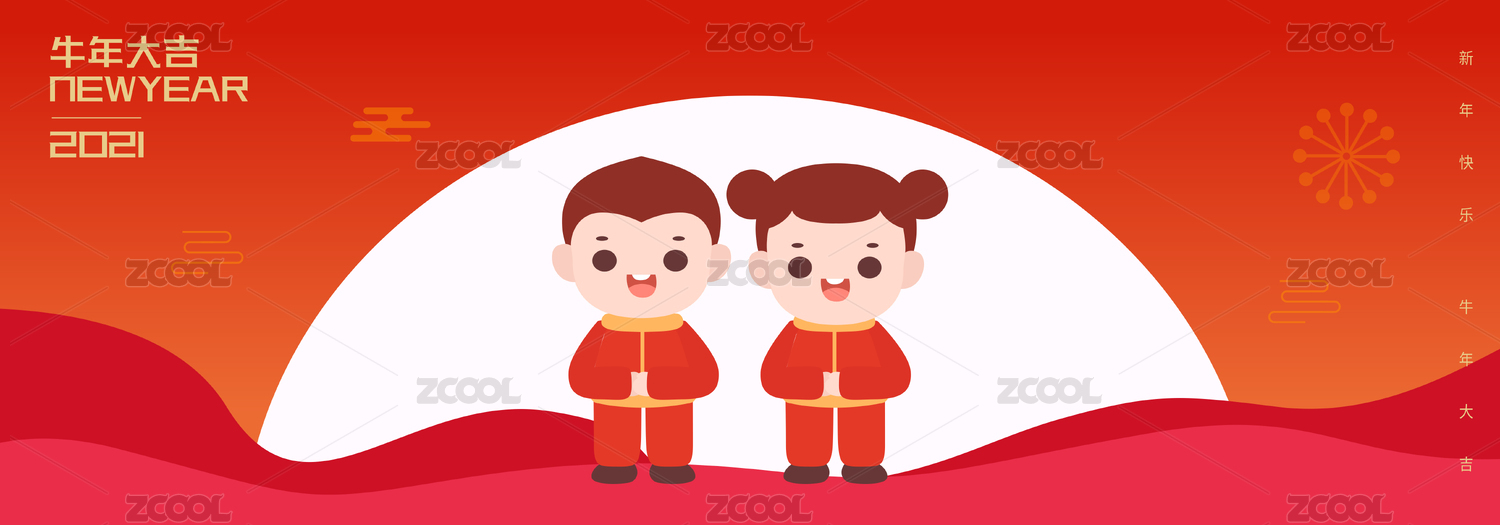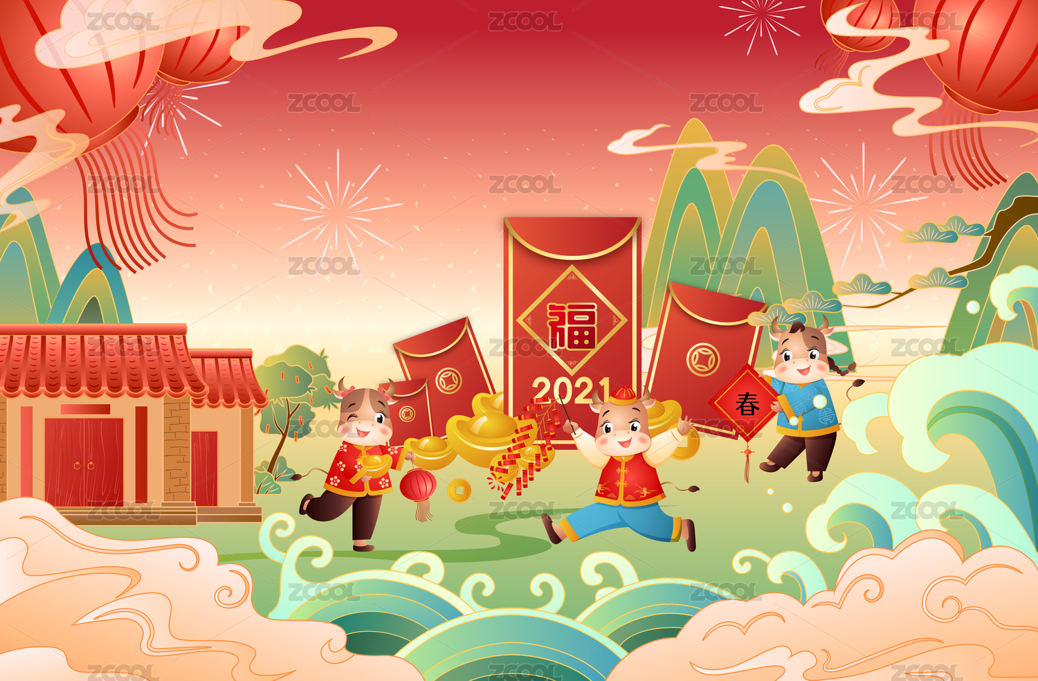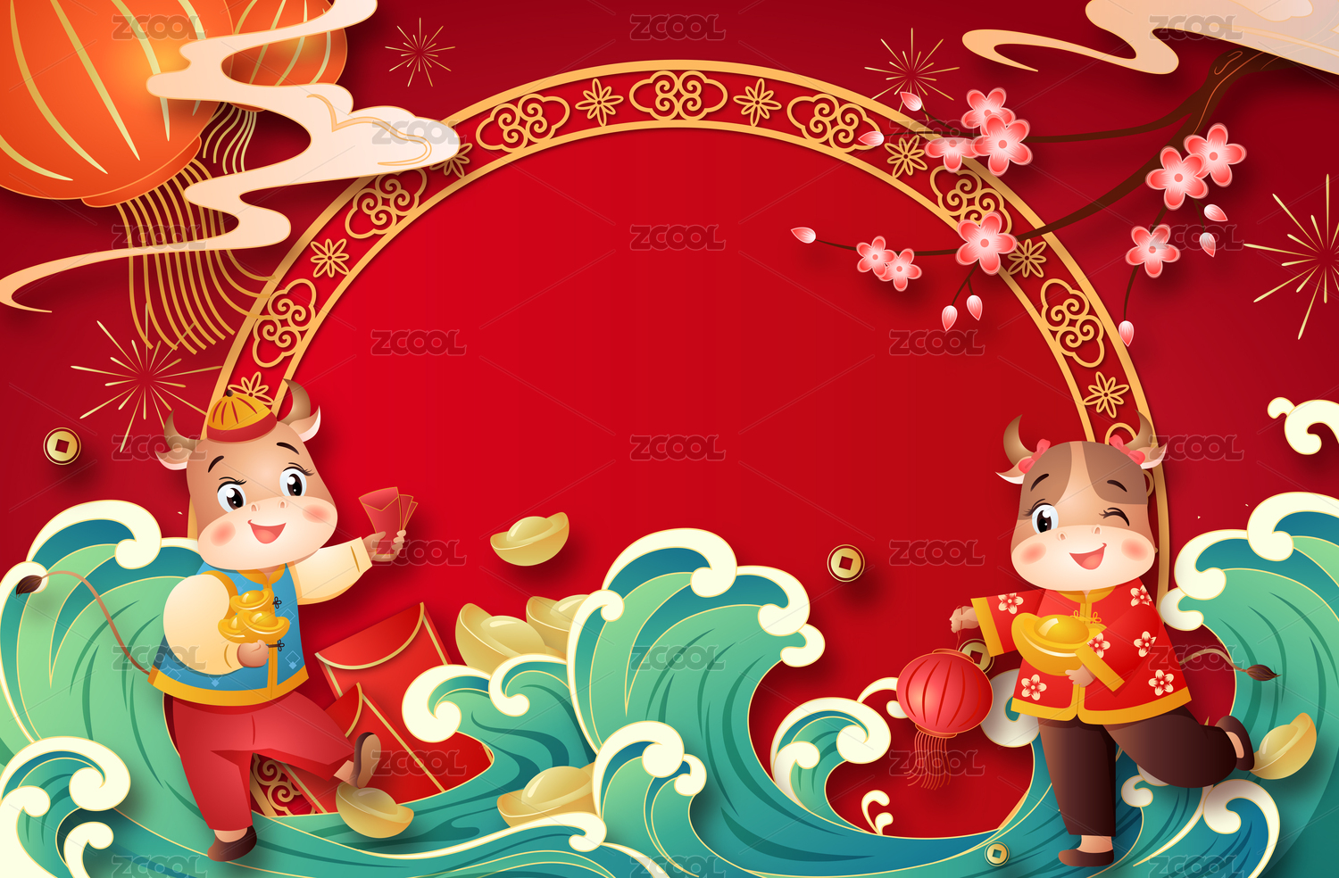 牛年新年卡通牛賀新春中國(guó)風(fēng)節(jié)日背景