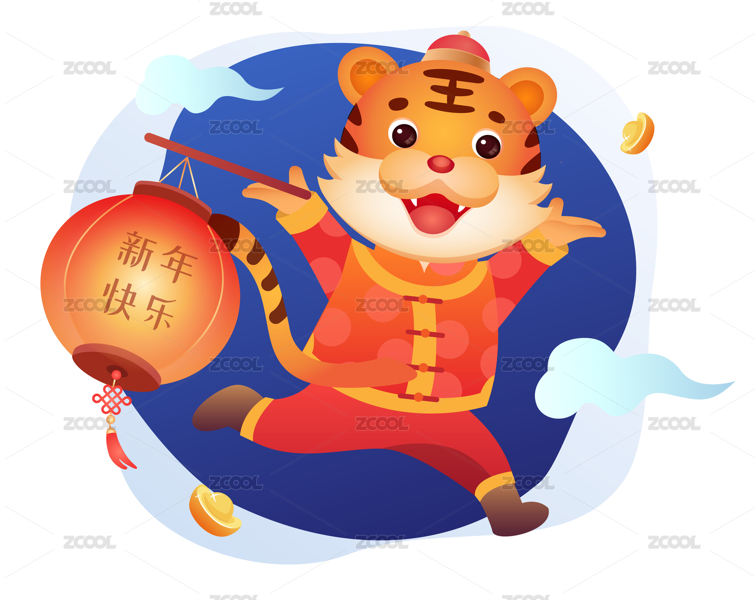 喜慶春節(jié)新年卡通錦鯉財(cái)神龍插畫