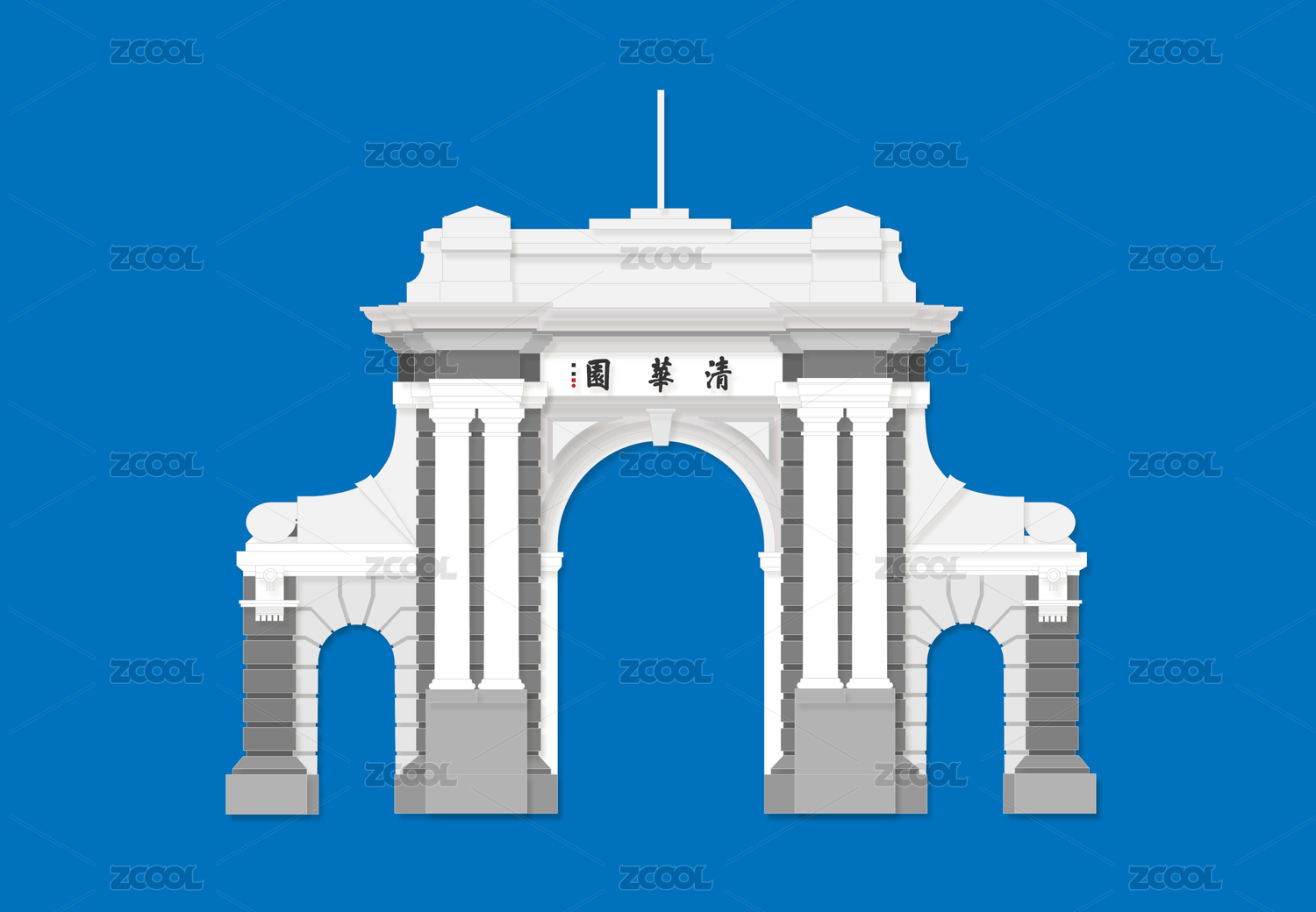 清華大學(xué)校門矢量插畫設(shè)計(jì)素材