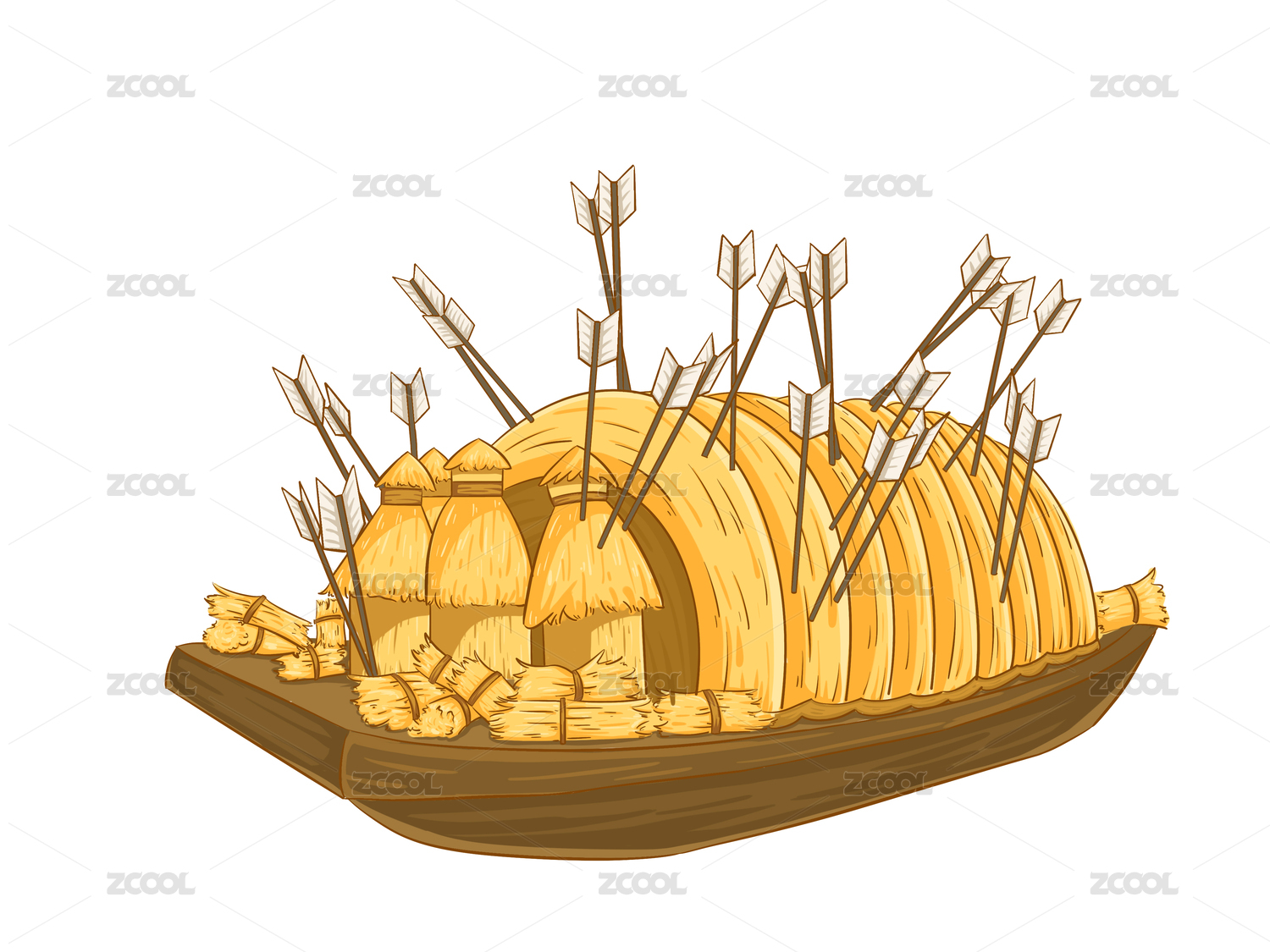 黃色三國(guó)成語(yǔ)草船借箭船舶草人箭矢元素