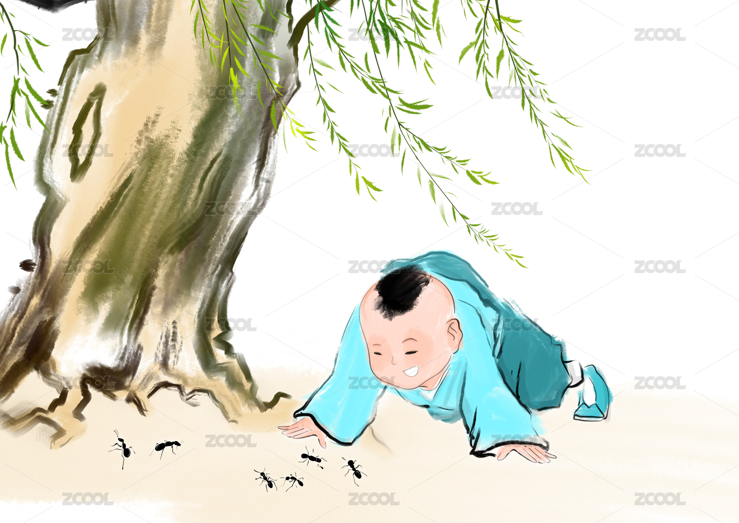 蚍蜉撼樹(shù)中國(guó)風(fēng)教育文學(xué)故事插畫(huà)古代人物成