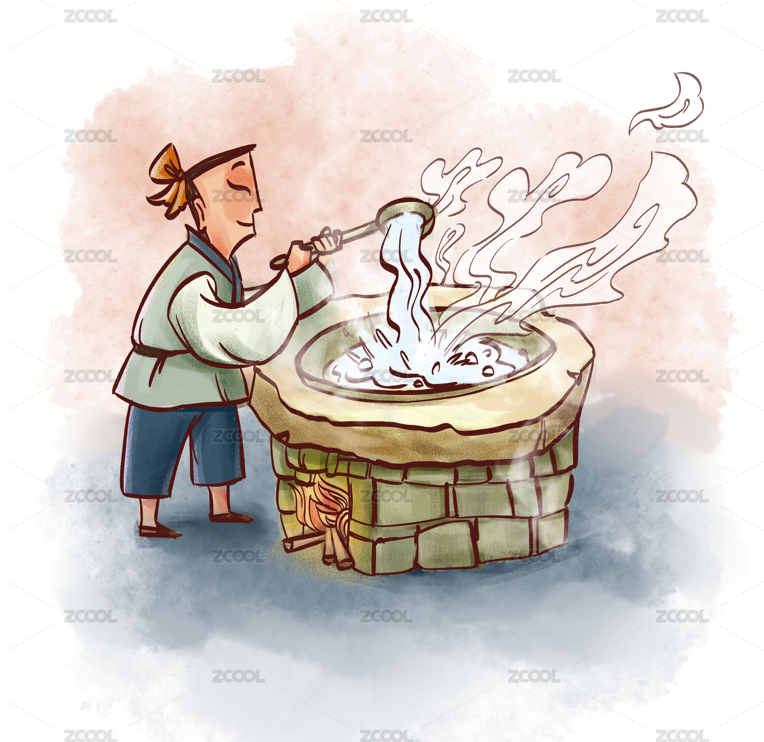 揚(yáng)湯止沸中國(guó)風(fēng)教育文學(xué)故事插畫(huà)古代人物成