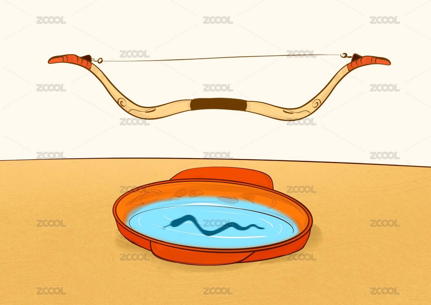 杯弓蛇影中國(guó)風(fēng)教育文學(xué)故事插畫(huà)古代人物成