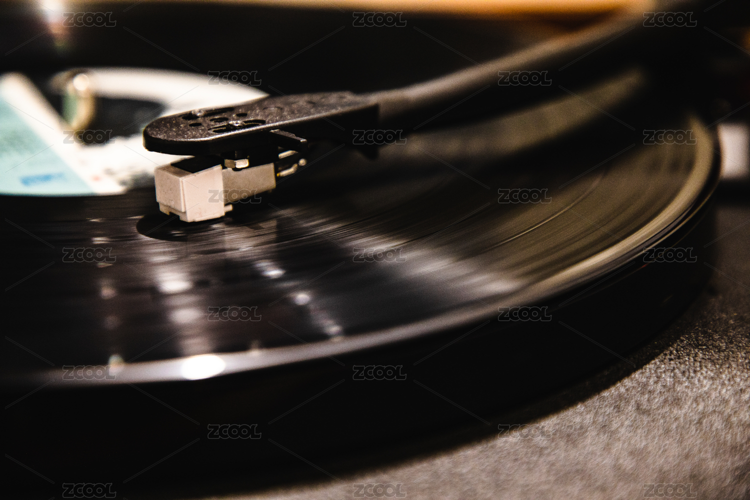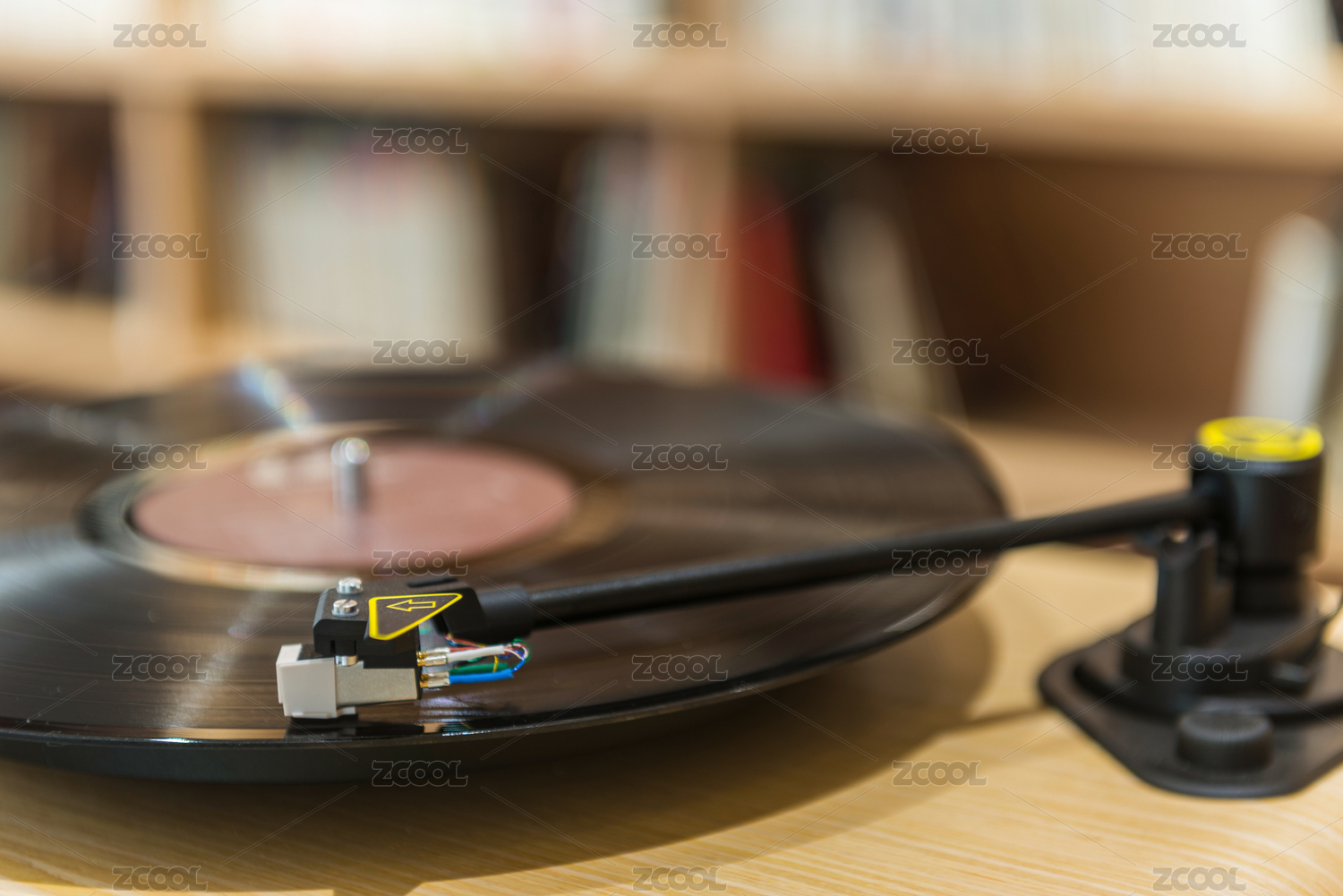 特寫播放中的黑膠唱片唱機(jī)