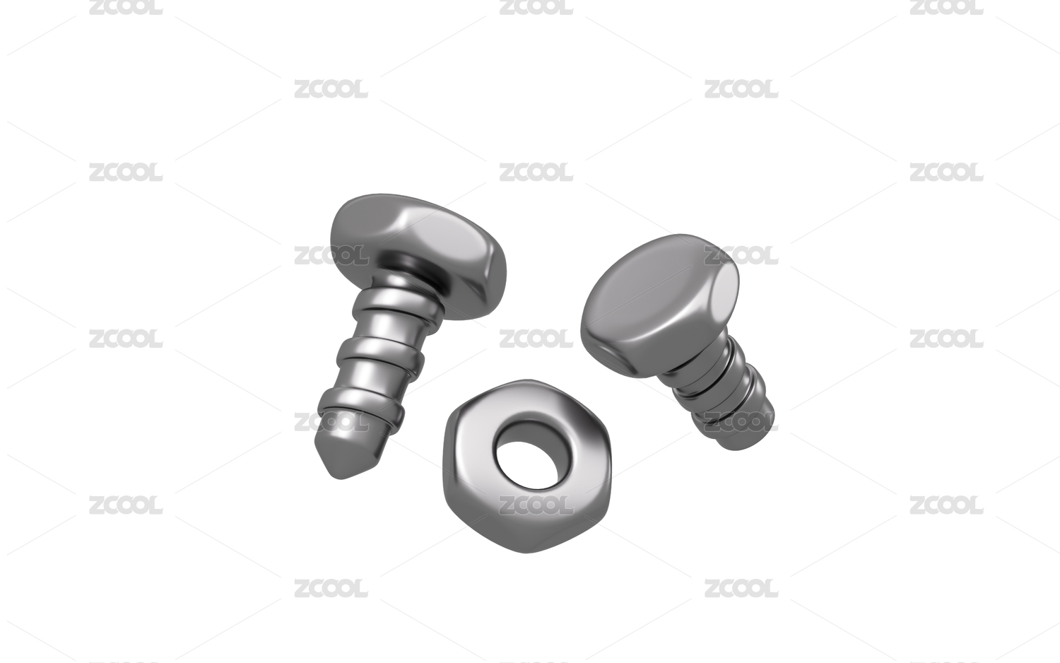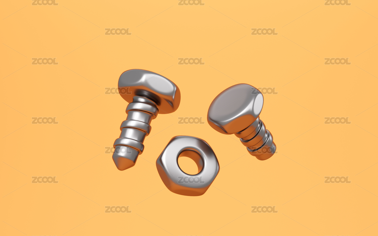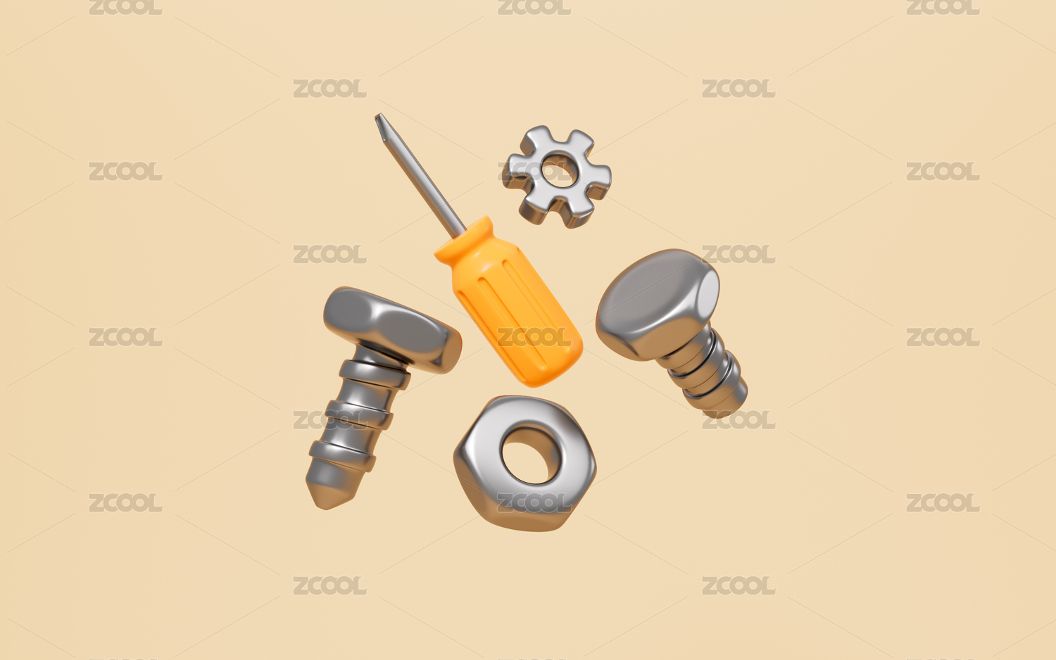 卡通螺釘螺帽等工具3D渲染