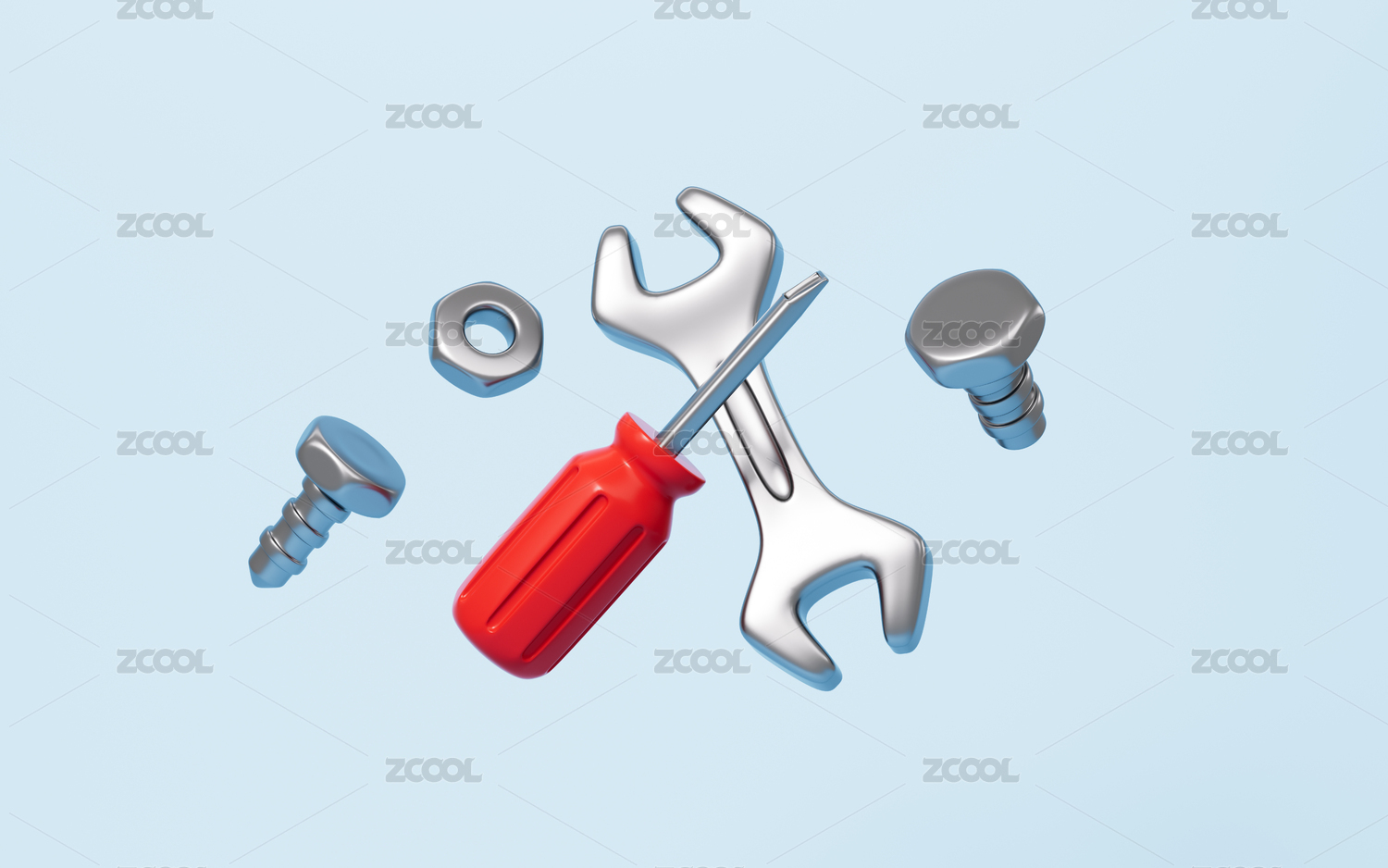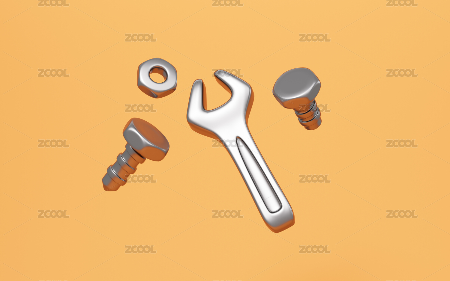卡通扳手和螺釘螺帽組合3D渲染