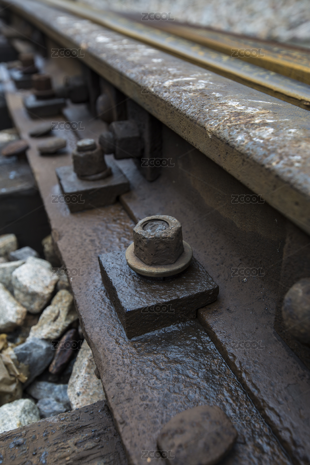 遺棄的生銹的鐵軌旁的螺絲