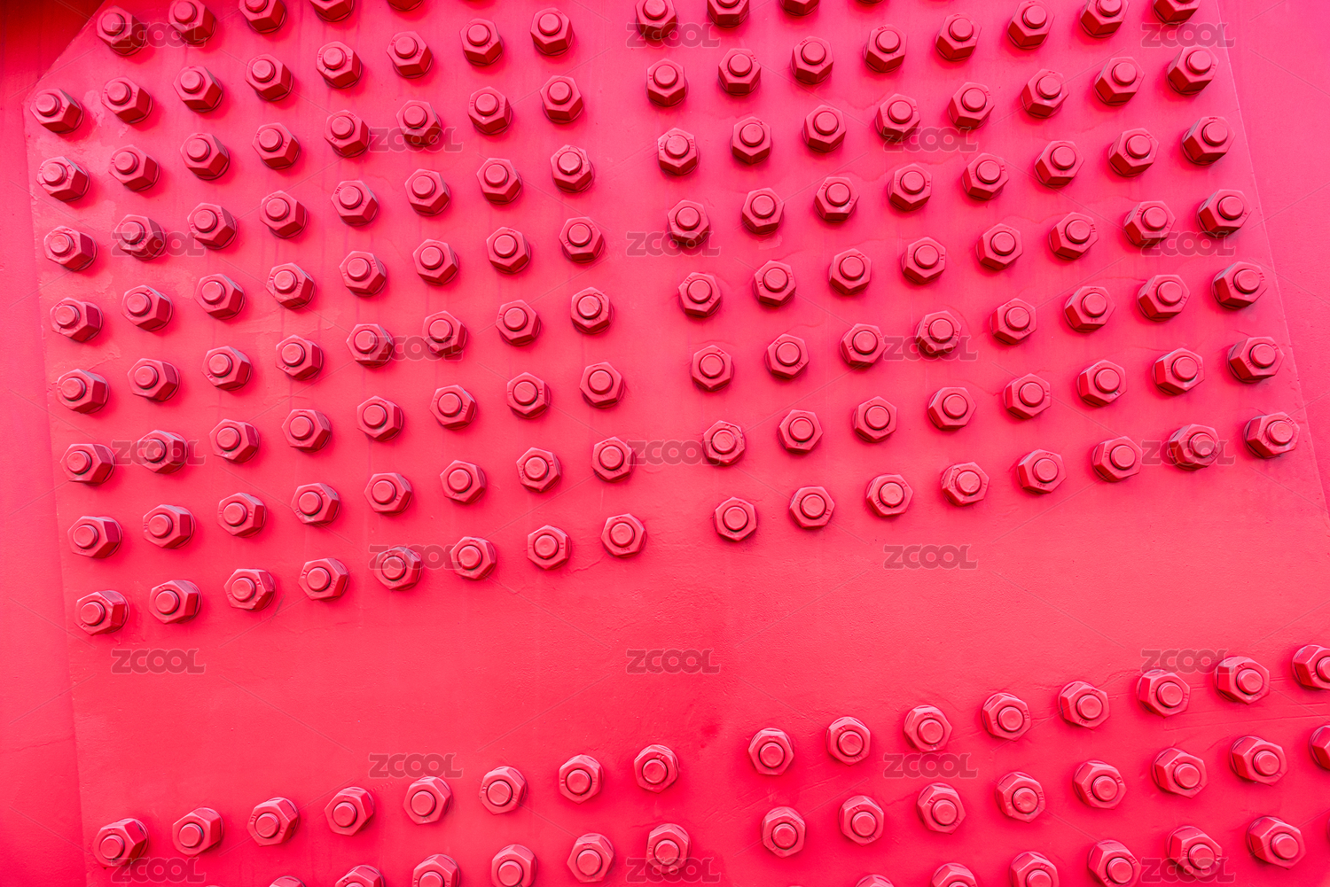 紅色鋼板上整齊排列的螺絲與螺帽