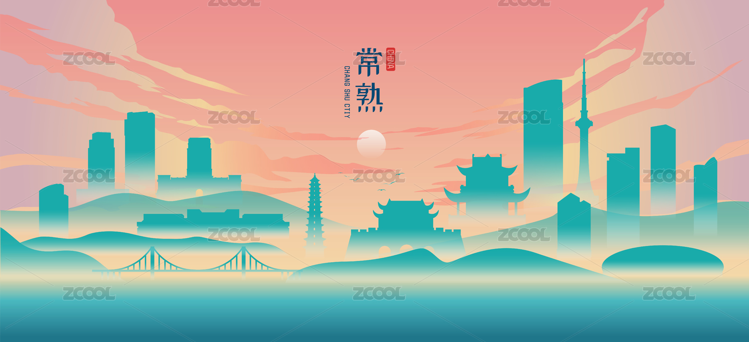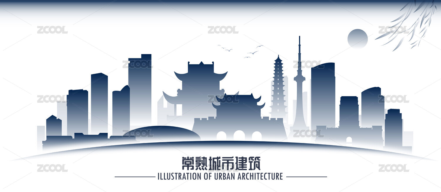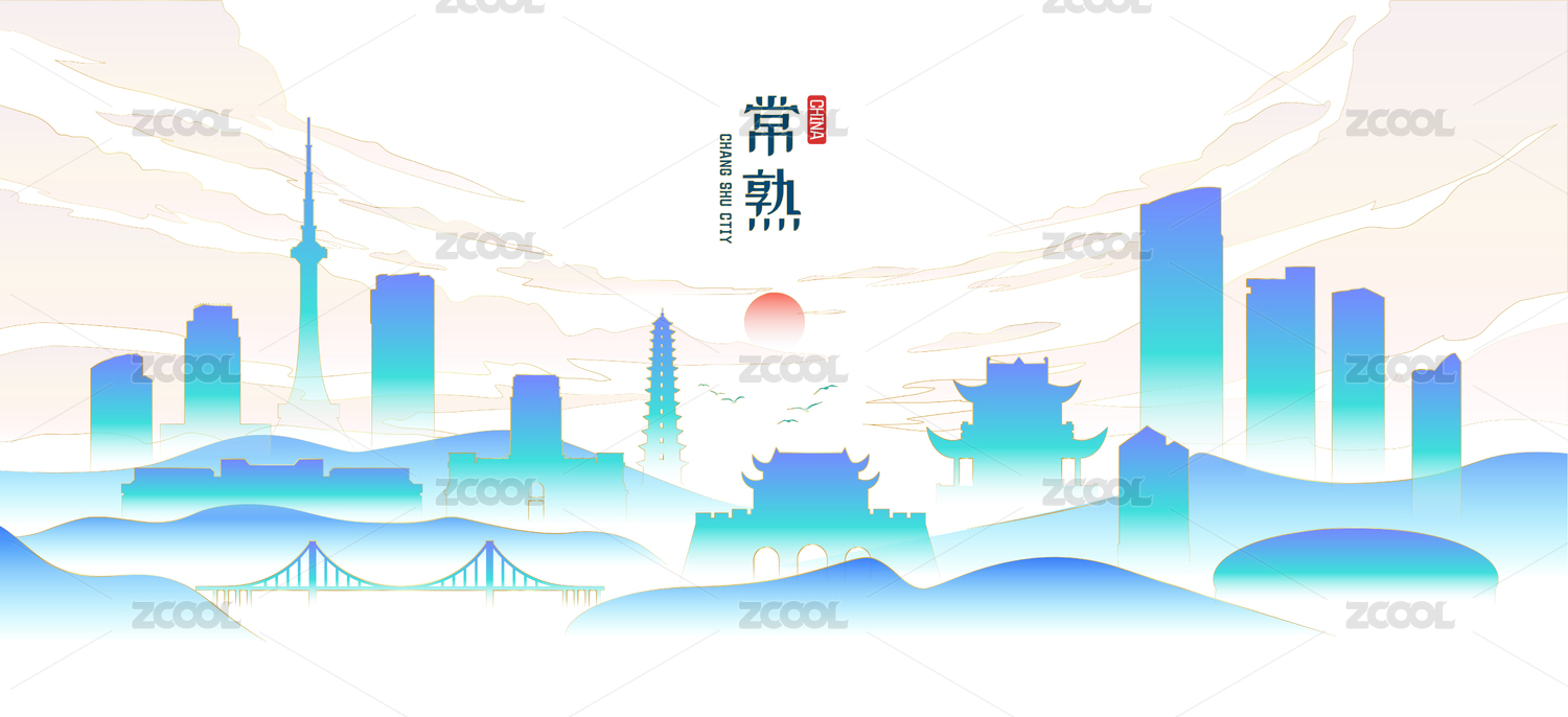 常熟城市地標(biāo)建筑國潮風(fēng)矢量手繪