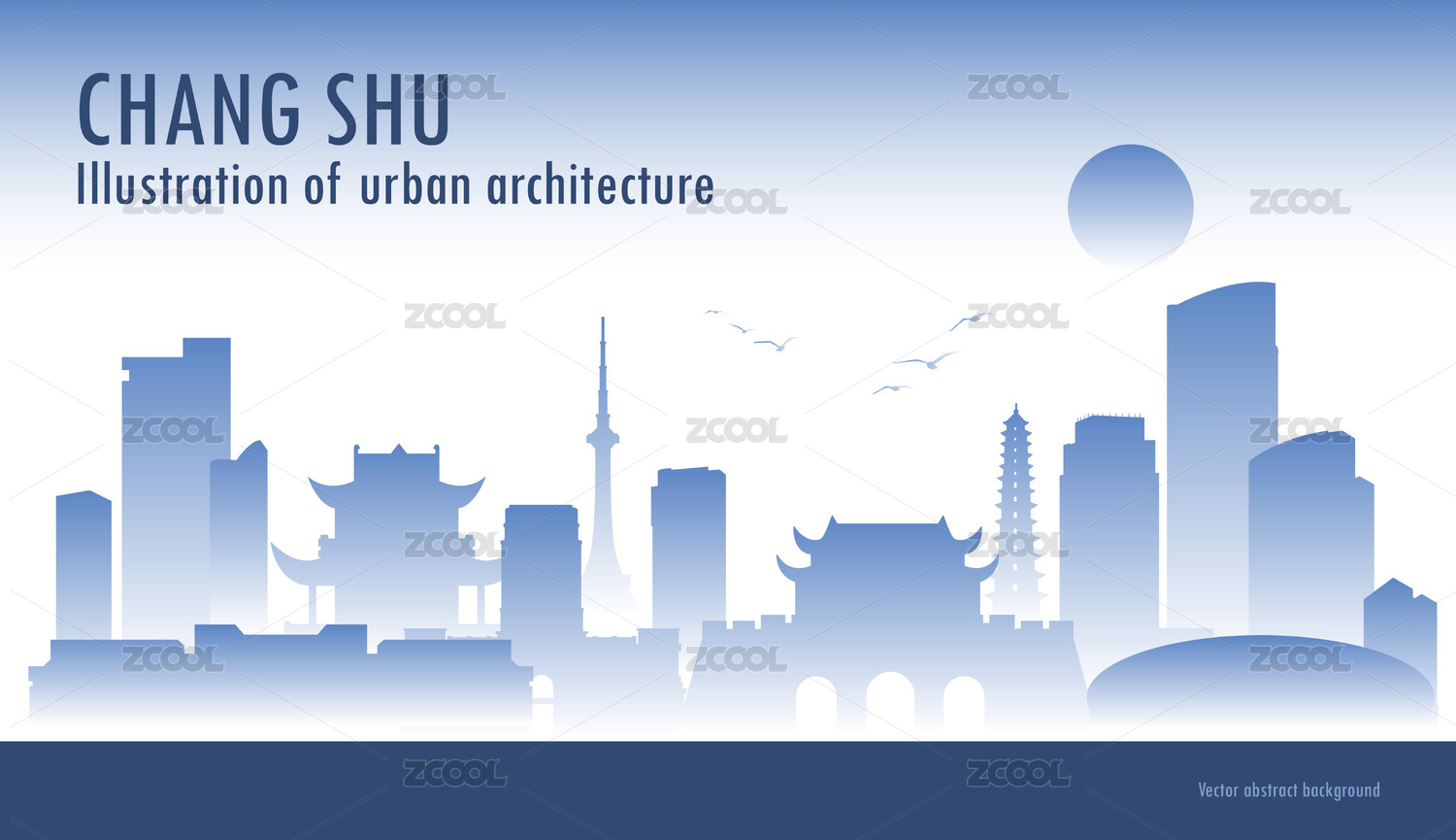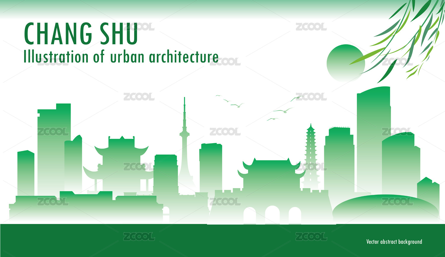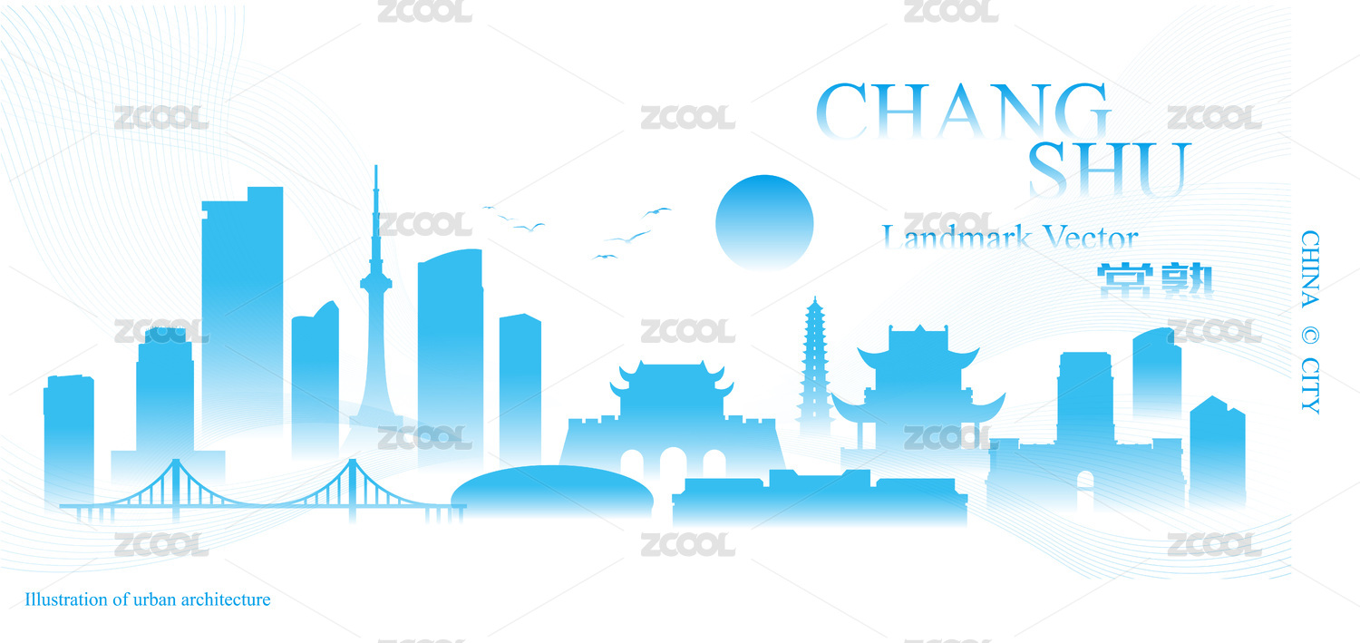 常熟城市地標(biāo)建筑國潮風(fēng)矢量手繪