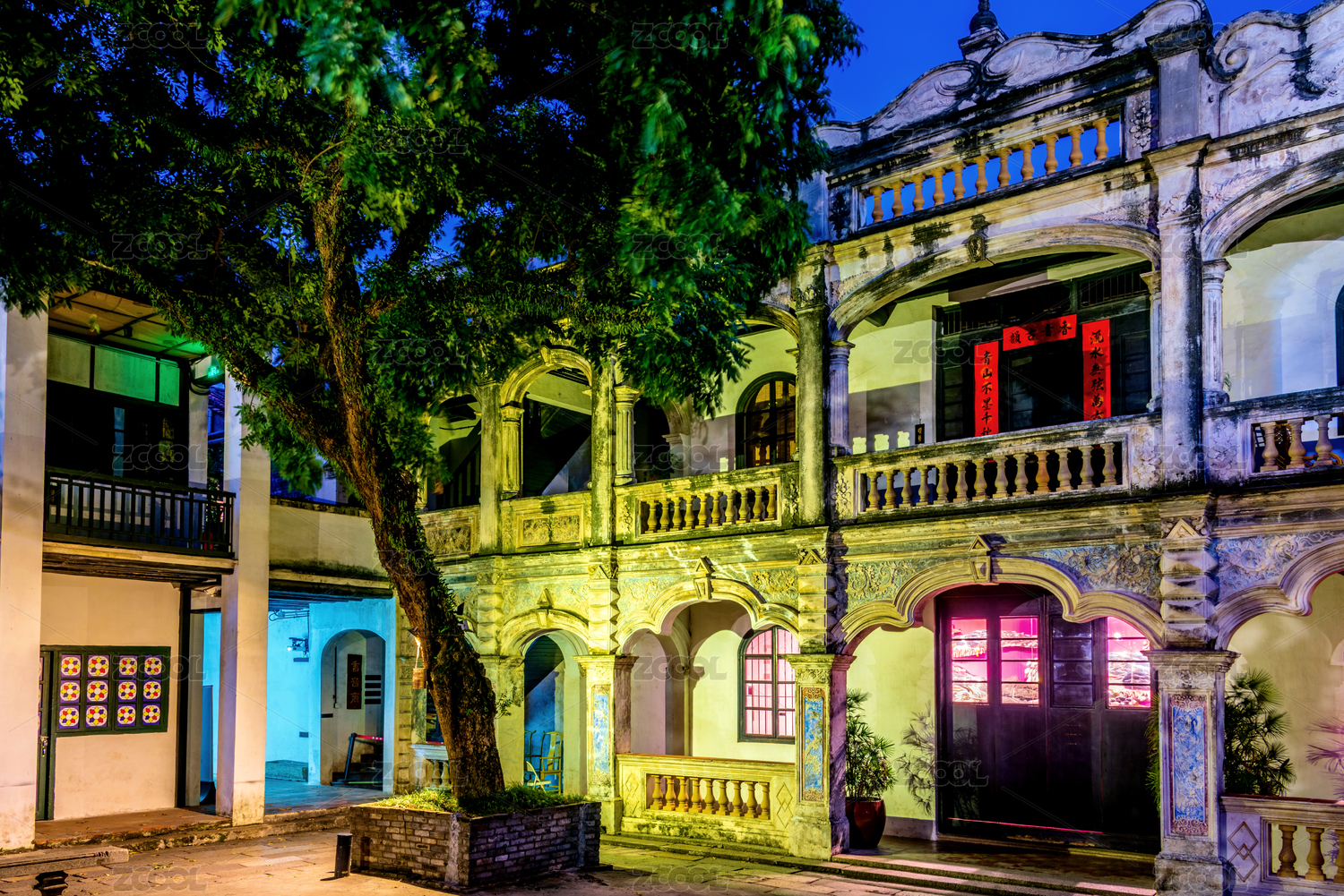 佛山嶺南天地中式傳統(tǒng)嶺南建筑夜景燈光