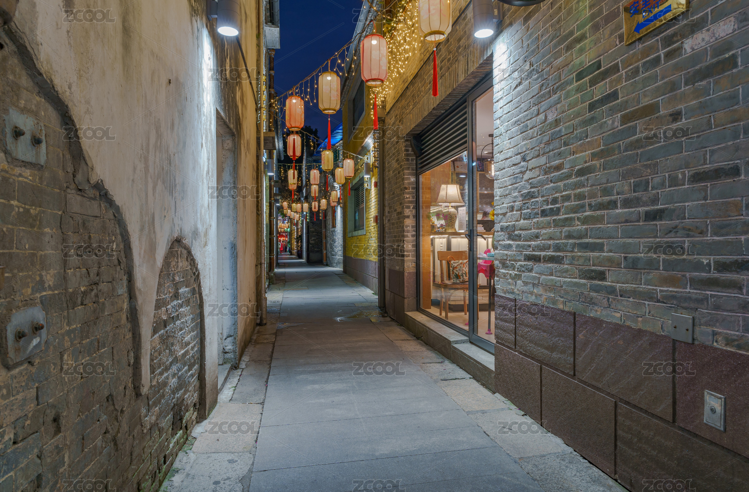 佛山嶺南天地中式傳統(tǒng)古鎮(zhèn)古巷街區(qū)夜景