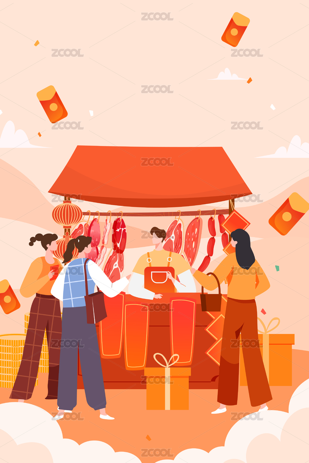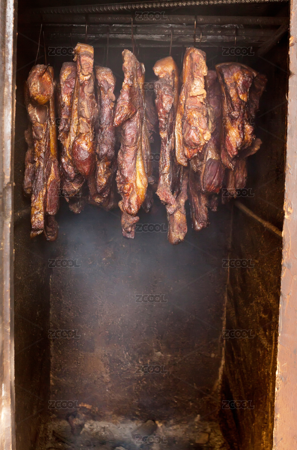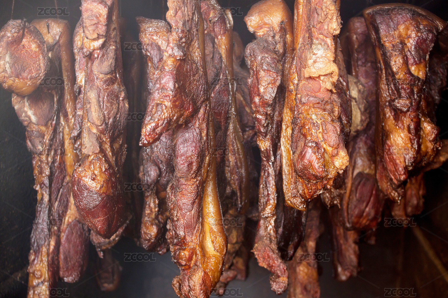 市場上懸掛售賣的中國傳統(tǒng)年貨腌制臘肉