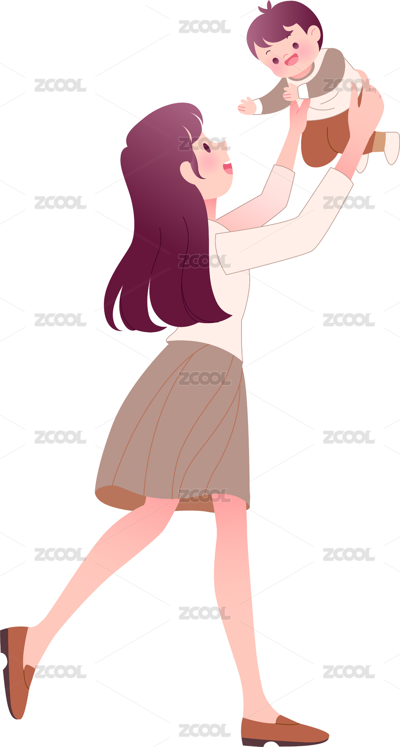 親子裝媽媽抱孩子舉高高免摳元素