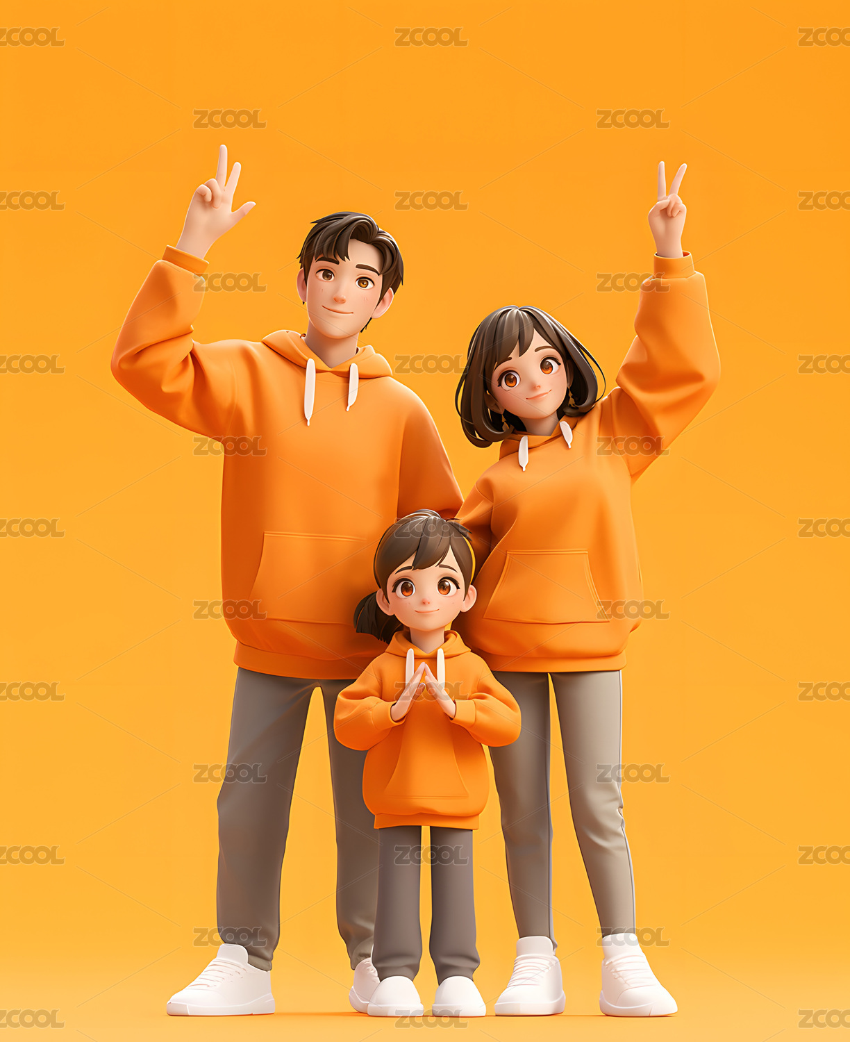 穿著親子裝的一家三口