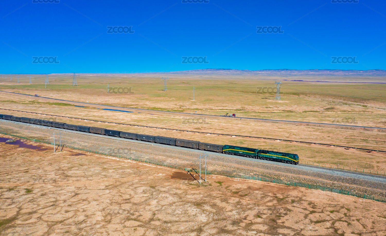 青藏鐵路上運行的中國鐵路貨運列車航拍圖