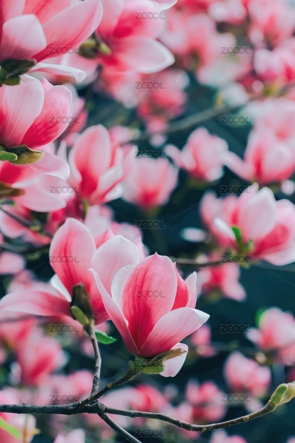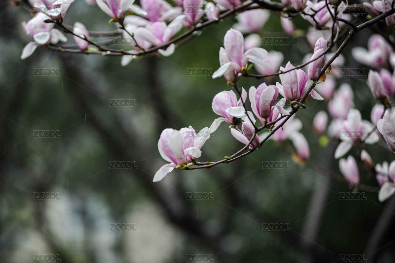 春天里盛開的紫玉蘭花