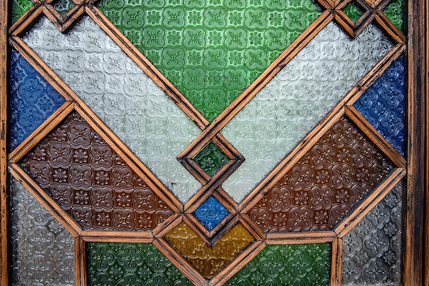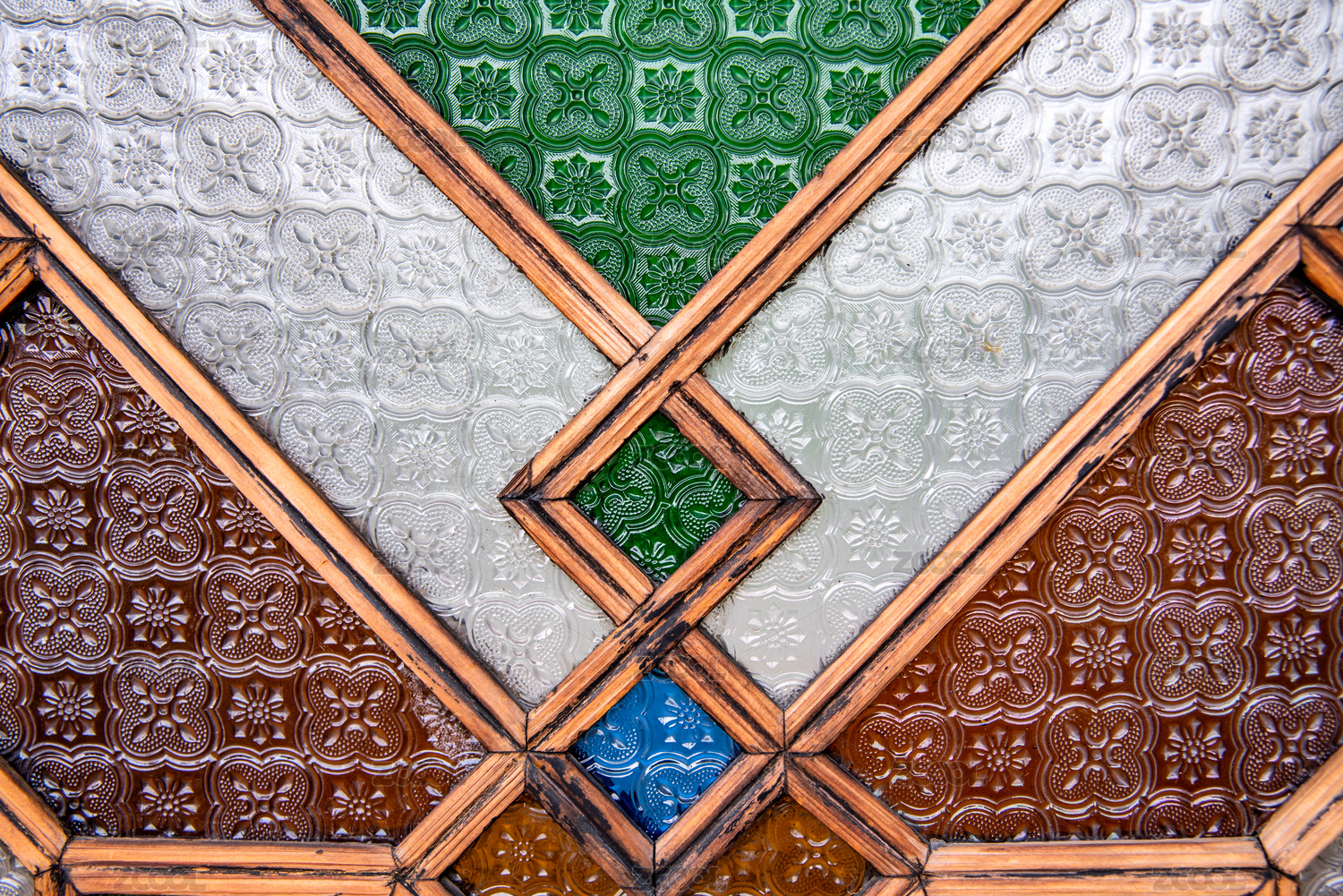 特寫復(fù)古舊時彩色壓花玻璃紋理圖案