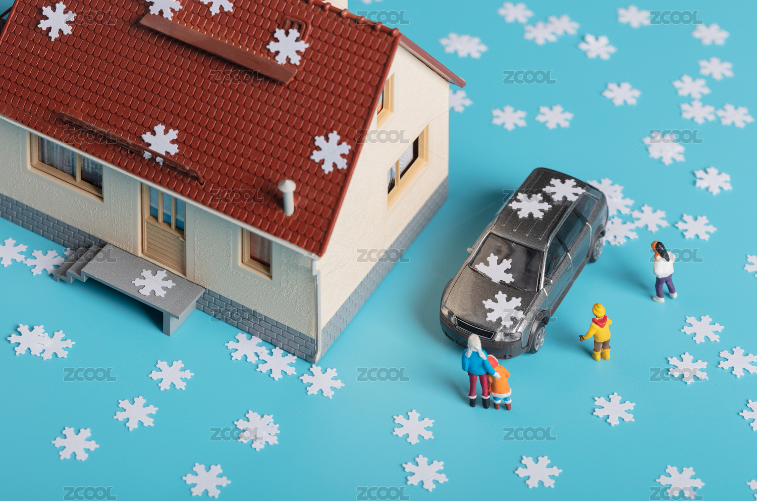 壓花剪紙汽車被雪花覆蓋兒童下雪了