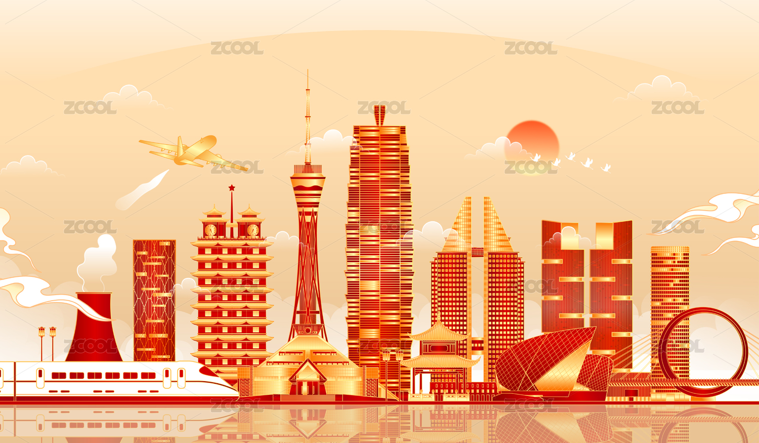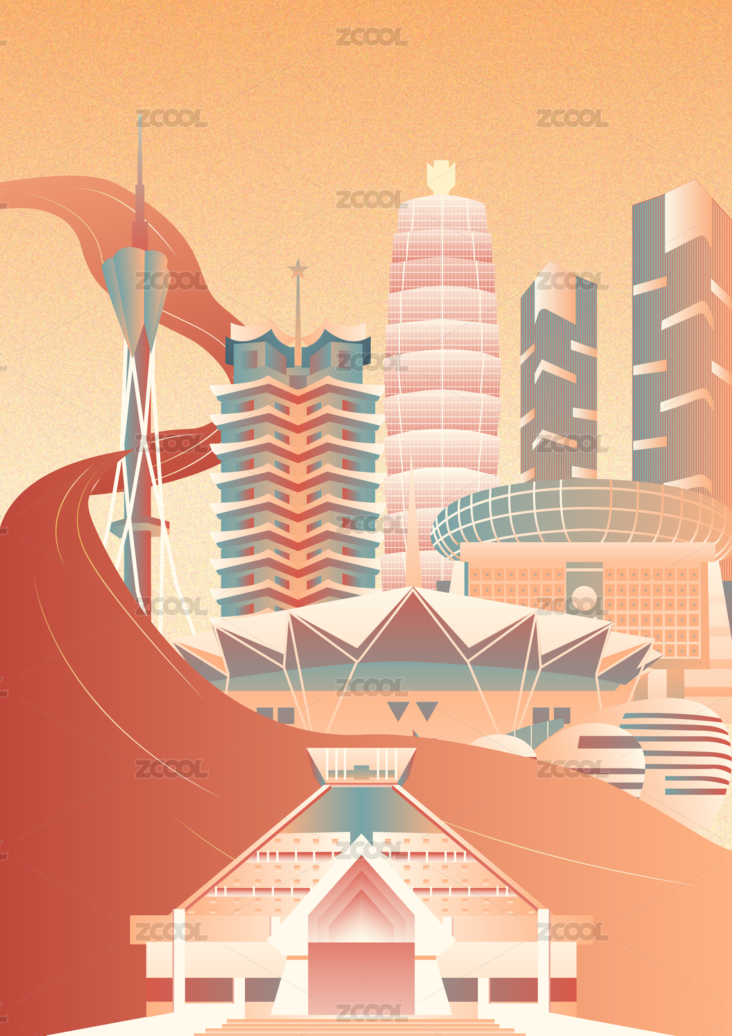 鄭州地標(biāo)建筑群矢量節(jié)日插畫