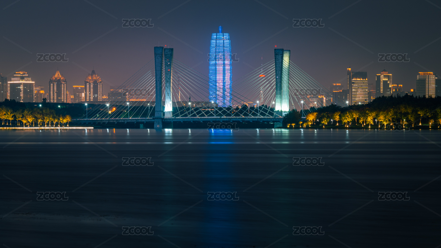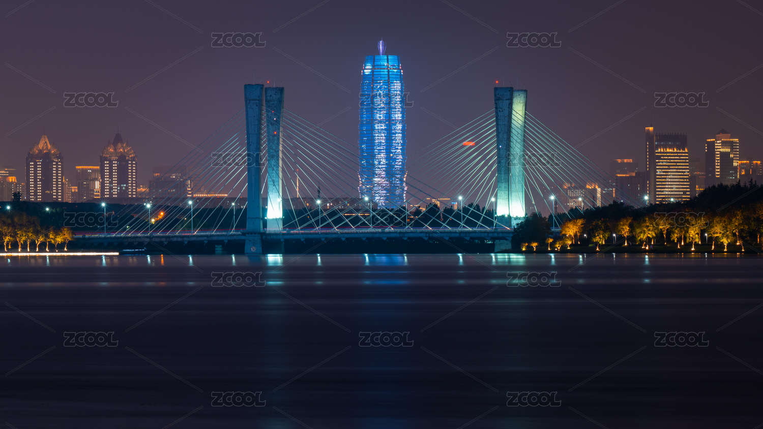 河南省鄭州市鄭州地標(biāo)中原福塔夜景航拍