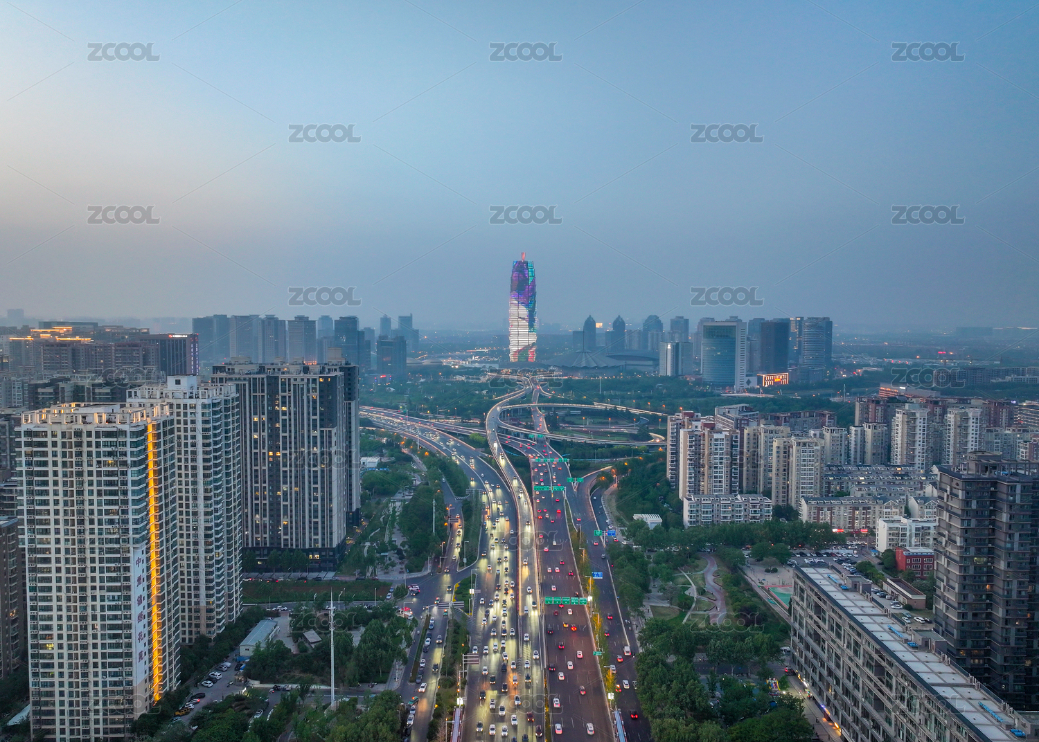 河南省鄭州市鄭州地標(biāo)中原福塔航拍