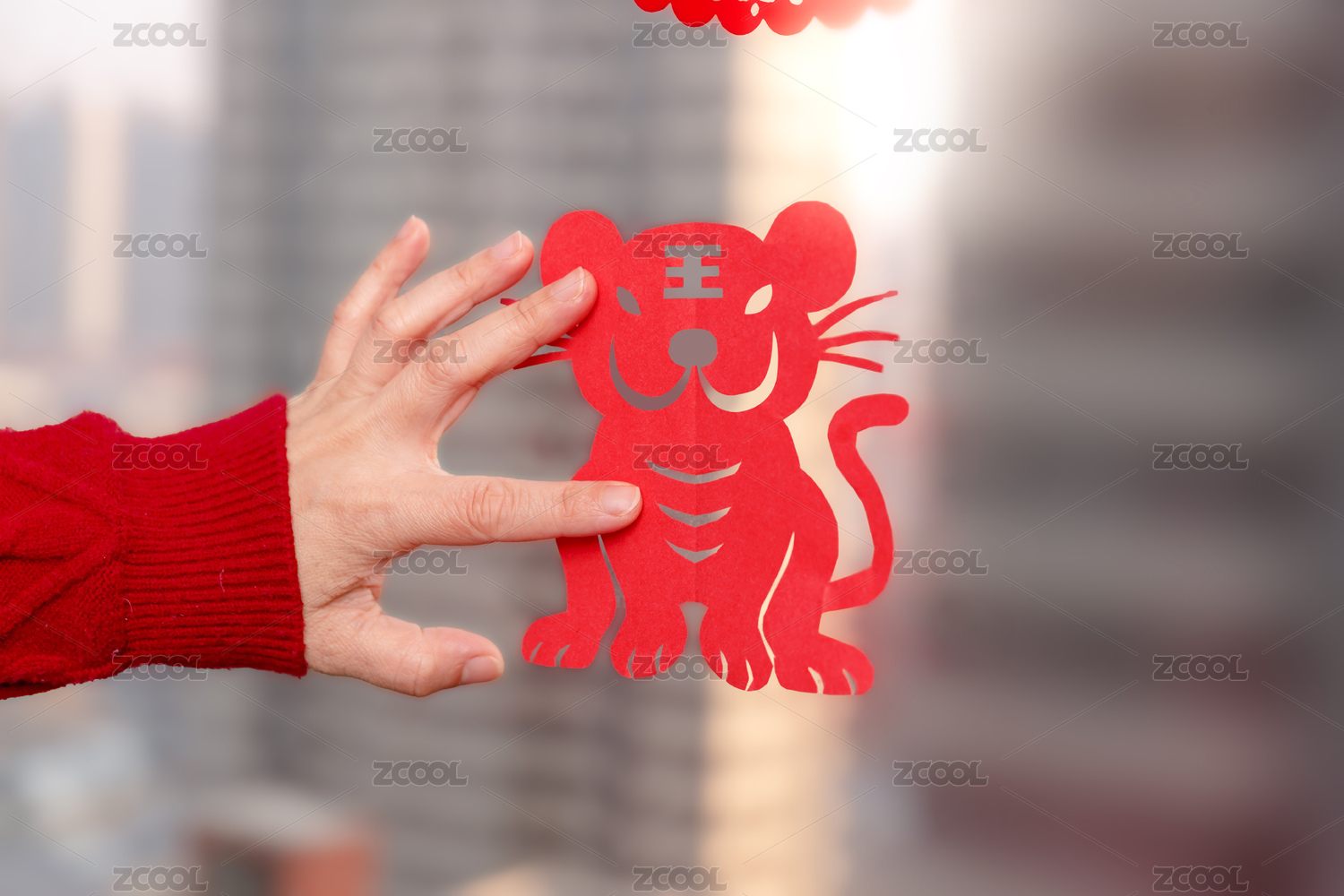 過新年在窗戶上貼窗花的手部特寫