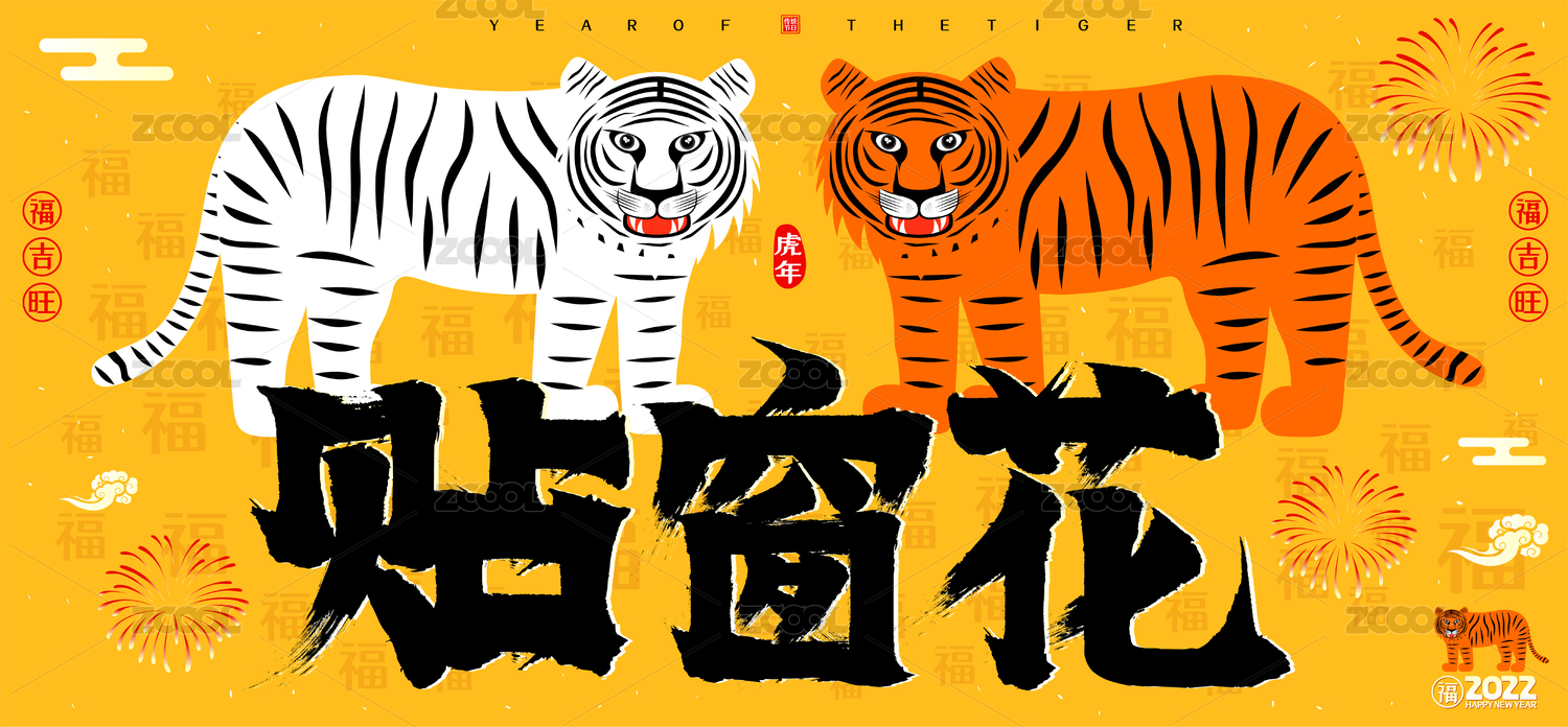 貼窗花2022新年春節(jié)生肖虎矢量書法字
