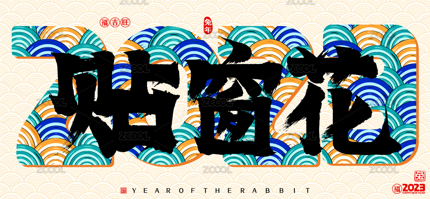 2023兔年貼窗花簡約國潮云紋矢量書法字
