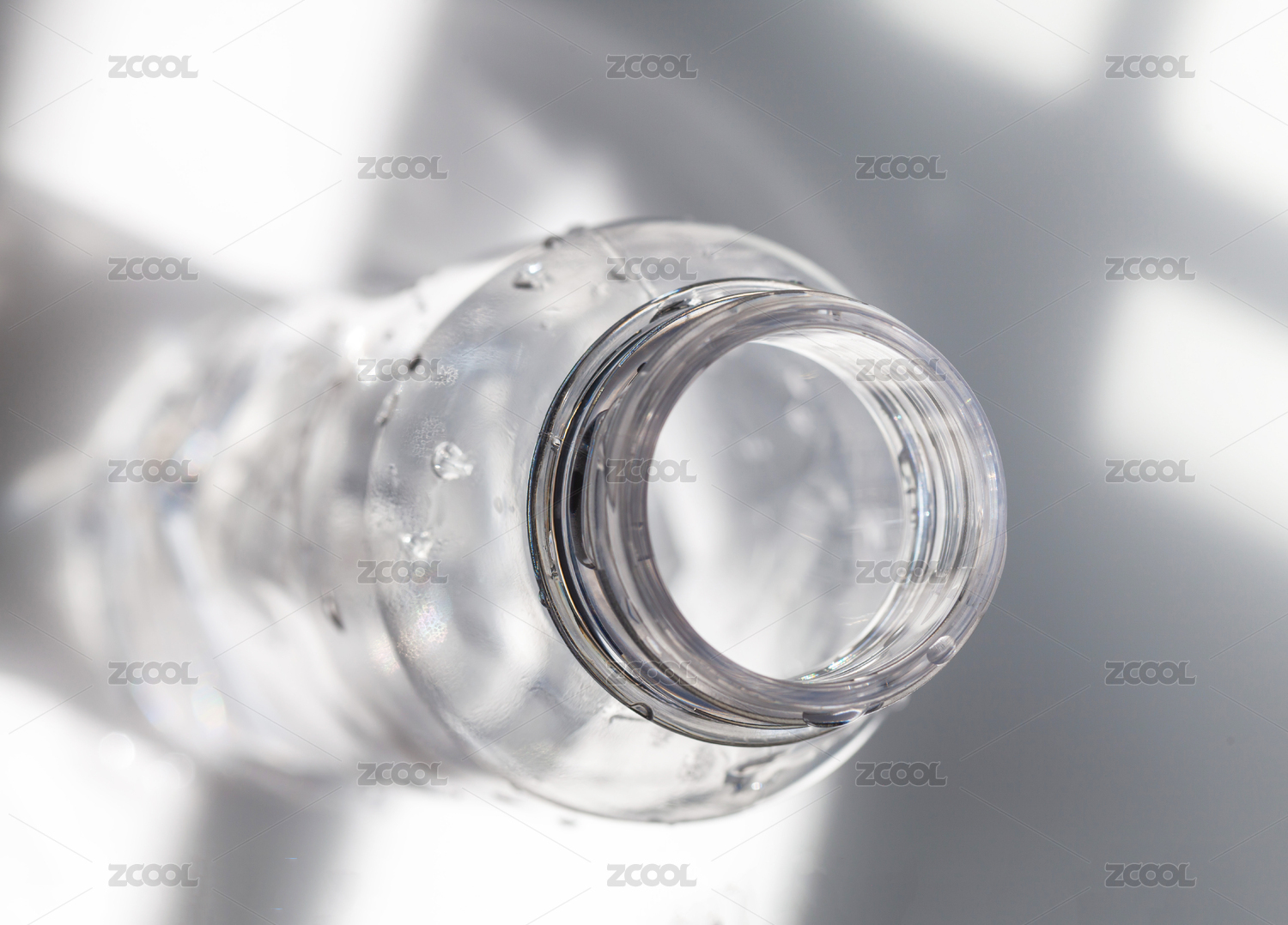 一瓶裝著純凈水的透明水瓶與光影