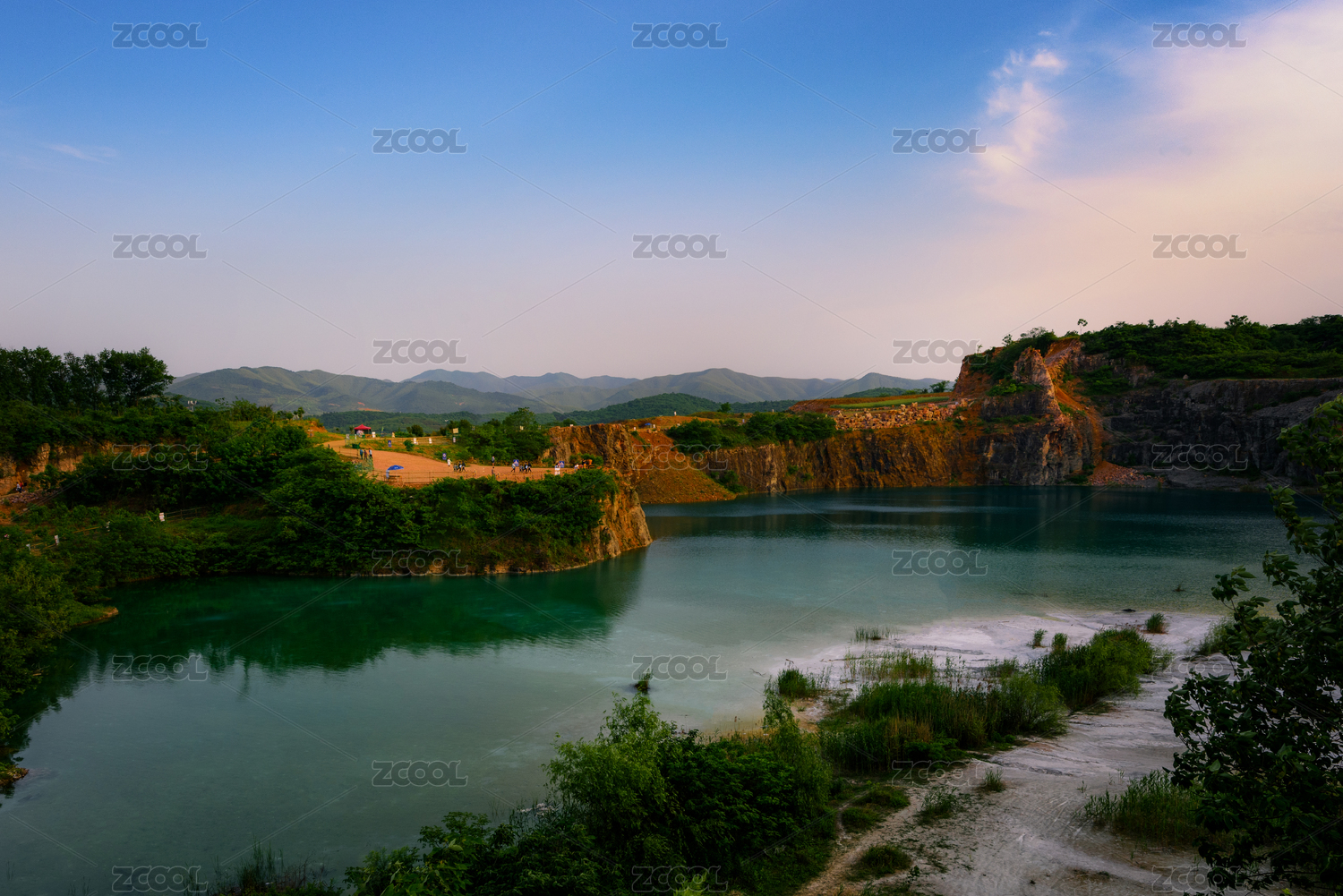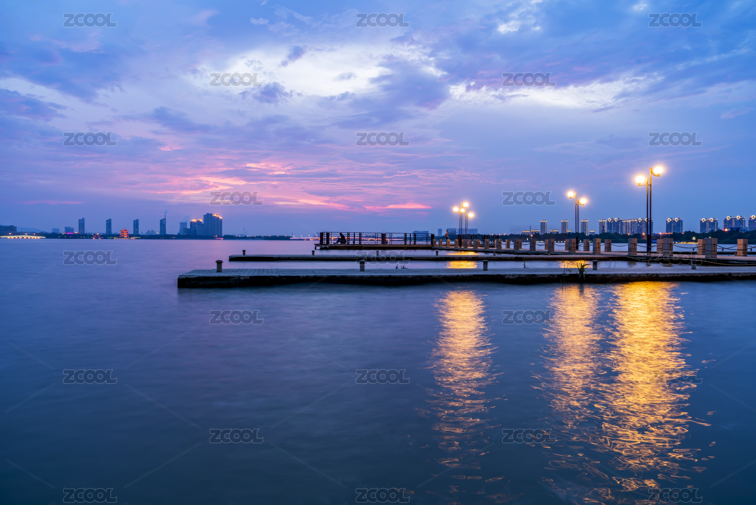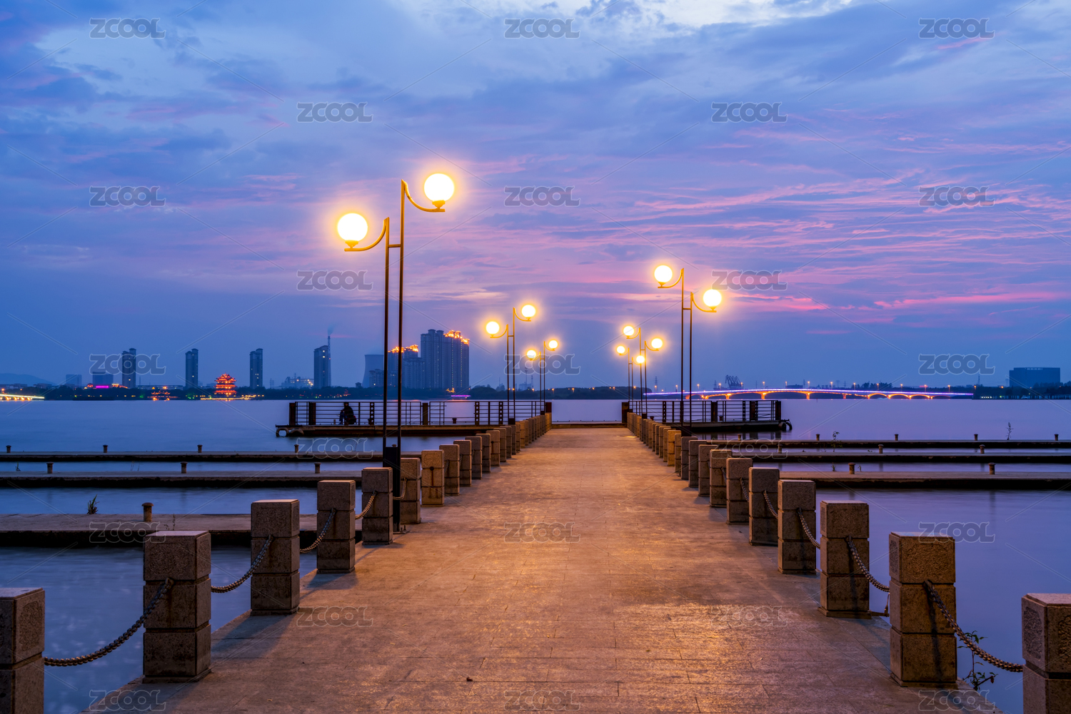 宜興任公釣臺(tái)湖邊日出石牌坊景觀