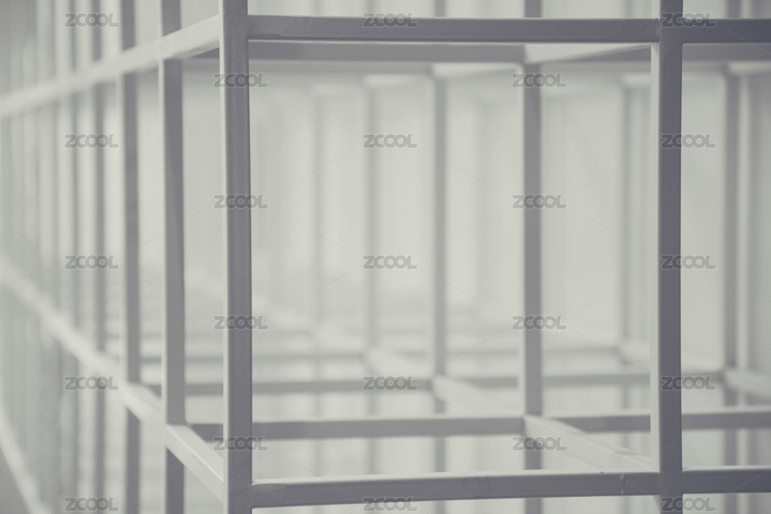 三維創(chuàng)意方塊與金屬框架結(jié)構(gòu) 三維渲染