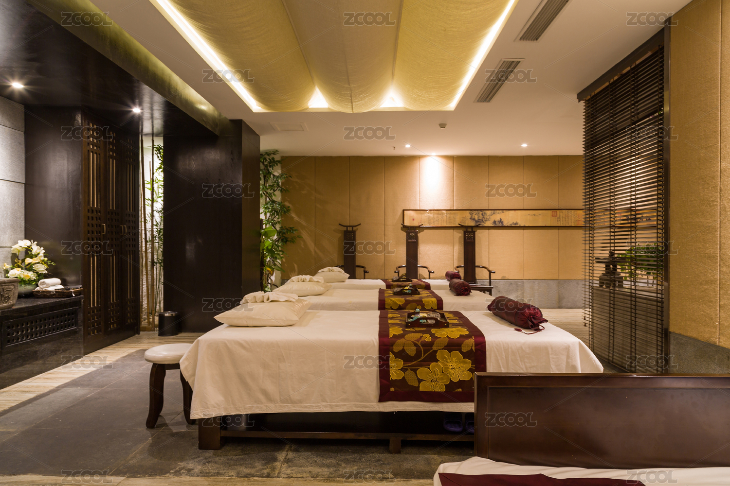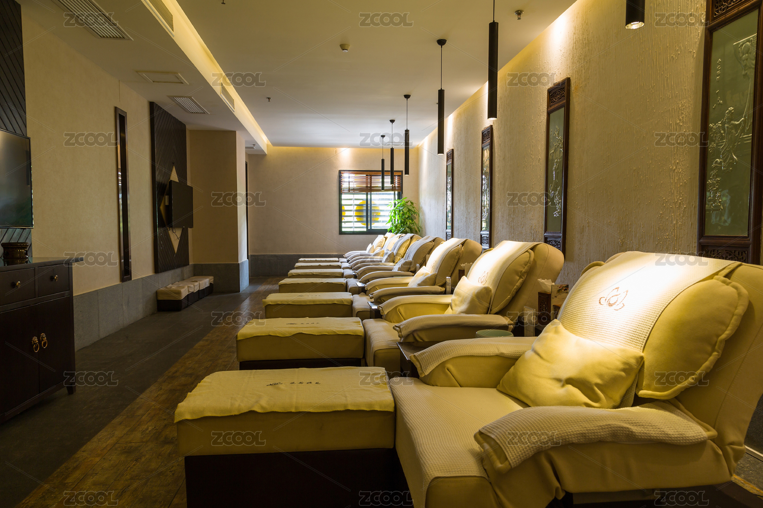 傳統(tǒng)中式裝修的足療會(huì)所室內(nèi)場(chǎng)景