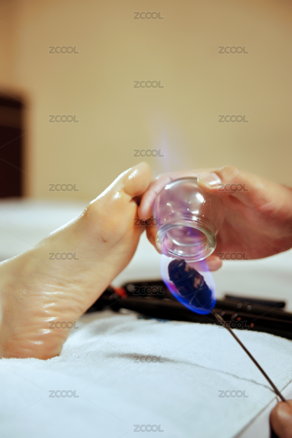 專業(yè)的足療技師為顧客做足底火罐
