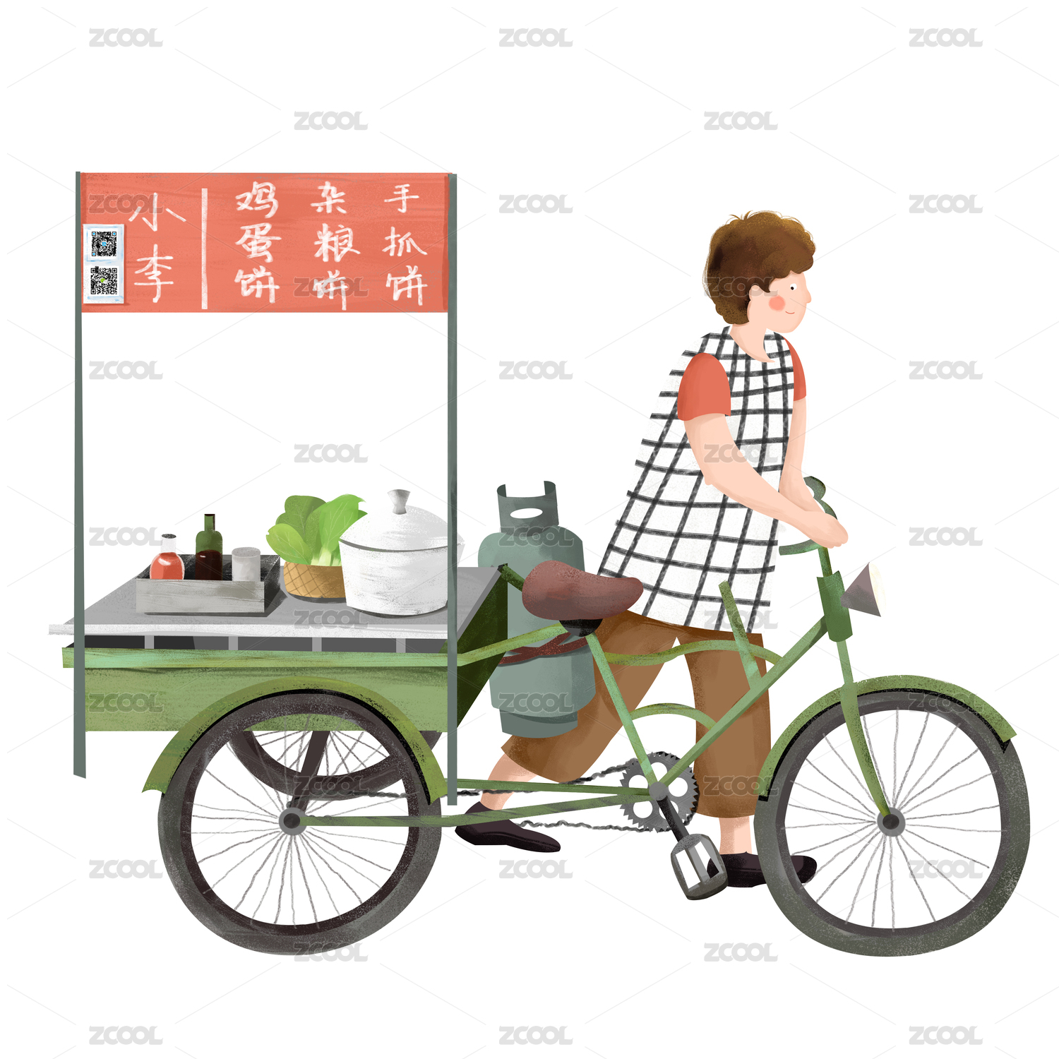 手推三輪車,賣煎餅果子,賣早點小攤販