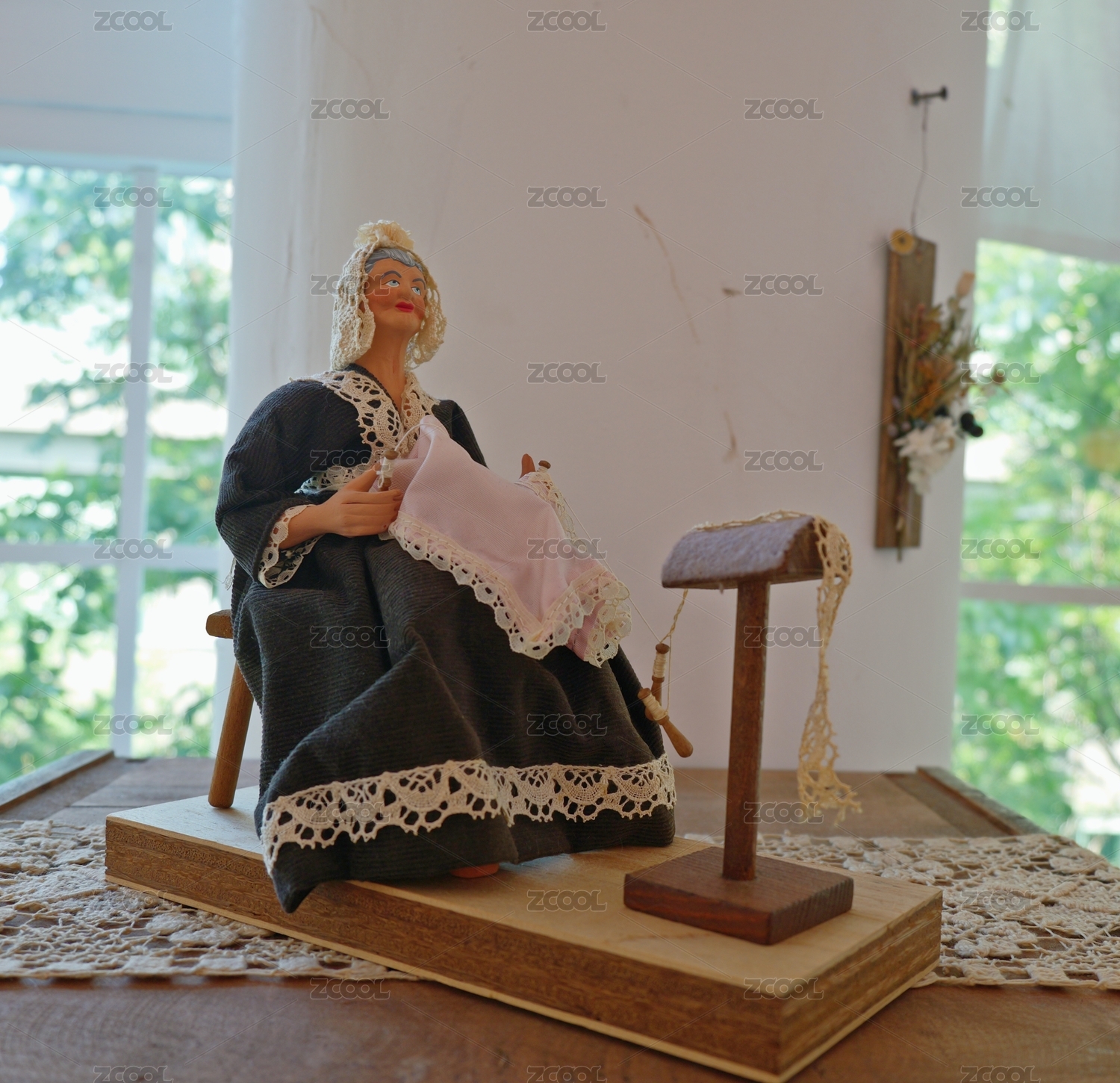 做手工蕾絲的老婆婆擺件