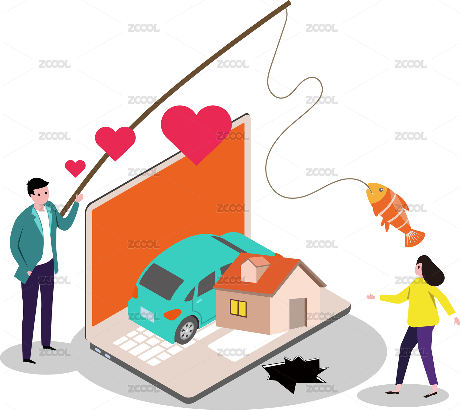 婚戀交友詐騙概念插畫(huà)