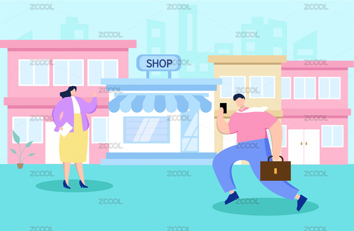 城市街道出行的商務(wù)男女