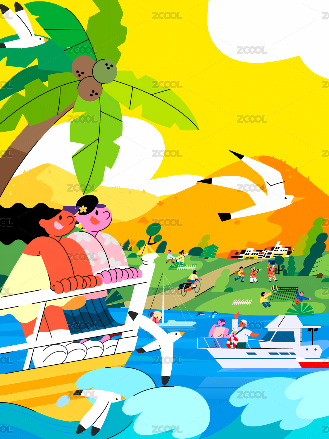 旅行旅游放輕松出海海鷗海邊戶外度假交友