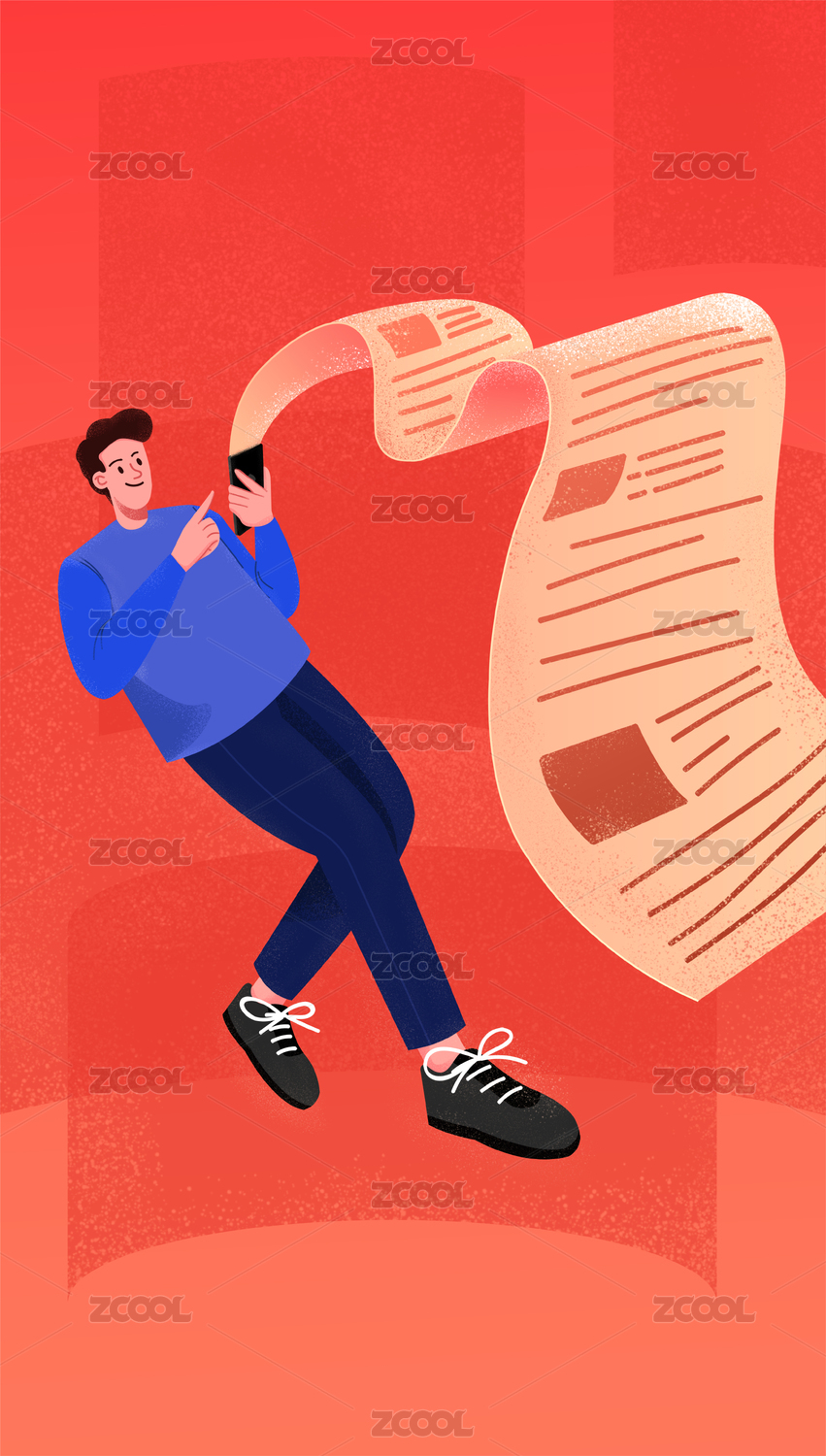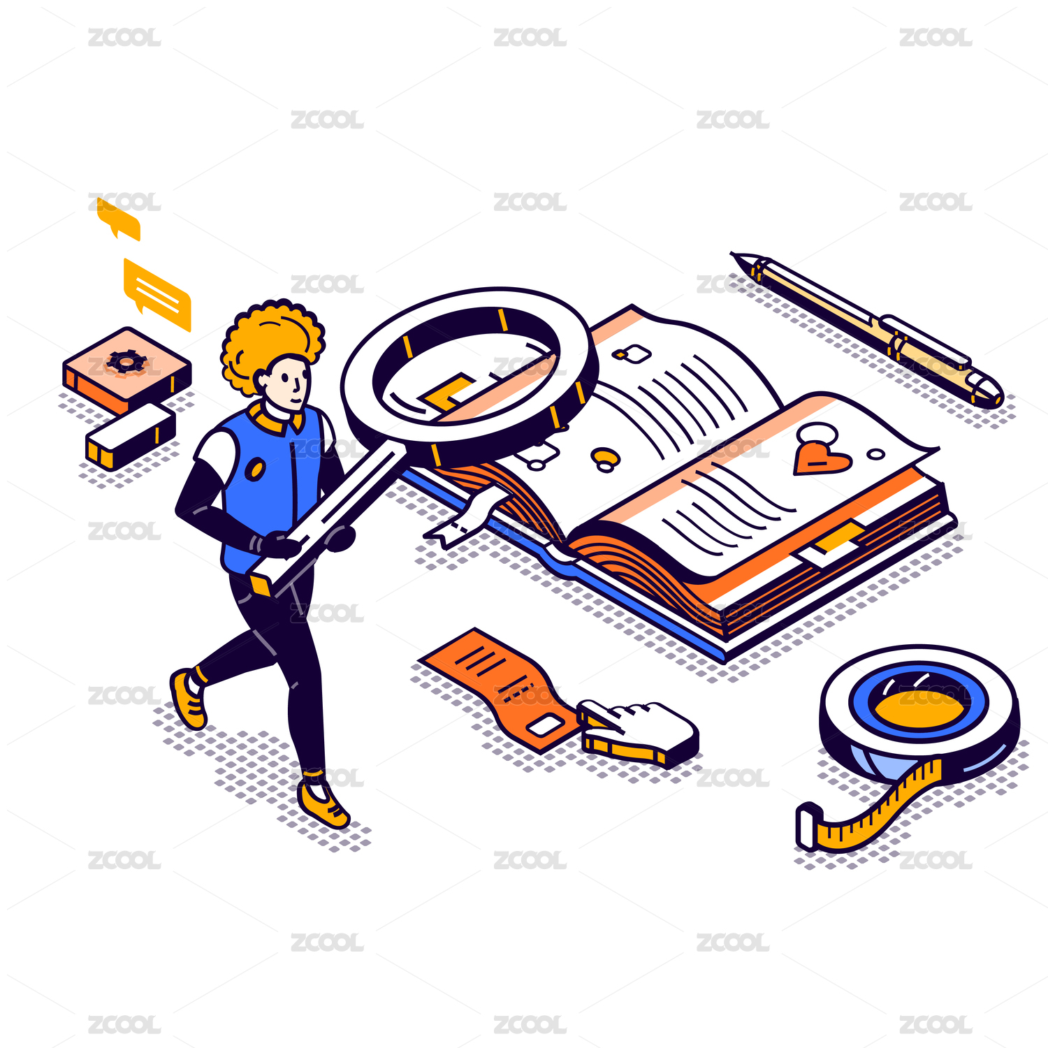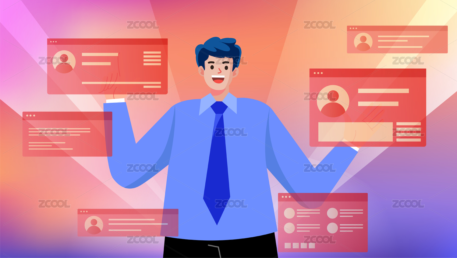 商務(wù)人物查詢信息彩色背景插畫(huà)