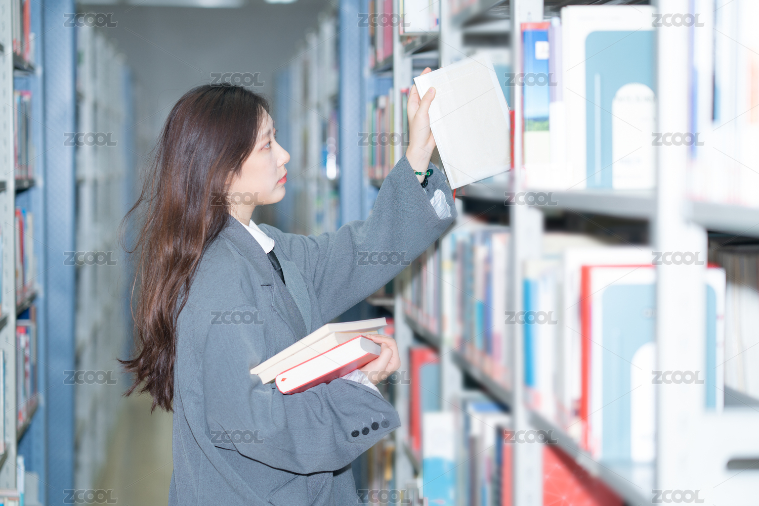 美麗的中國(guó)人美女正在圖書(shū)館認(rèn)真的看著書(shū)籍書(shū)本閱讀學(xué)習(xí)查詢資料文獻(xiàn)看書(shū)讀書(shū)