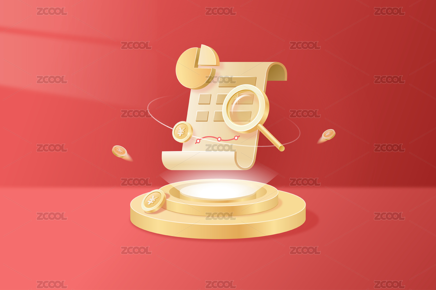 紅色背景的金融保險(xiǎn)紙張放大鏡查詢搜索賬單