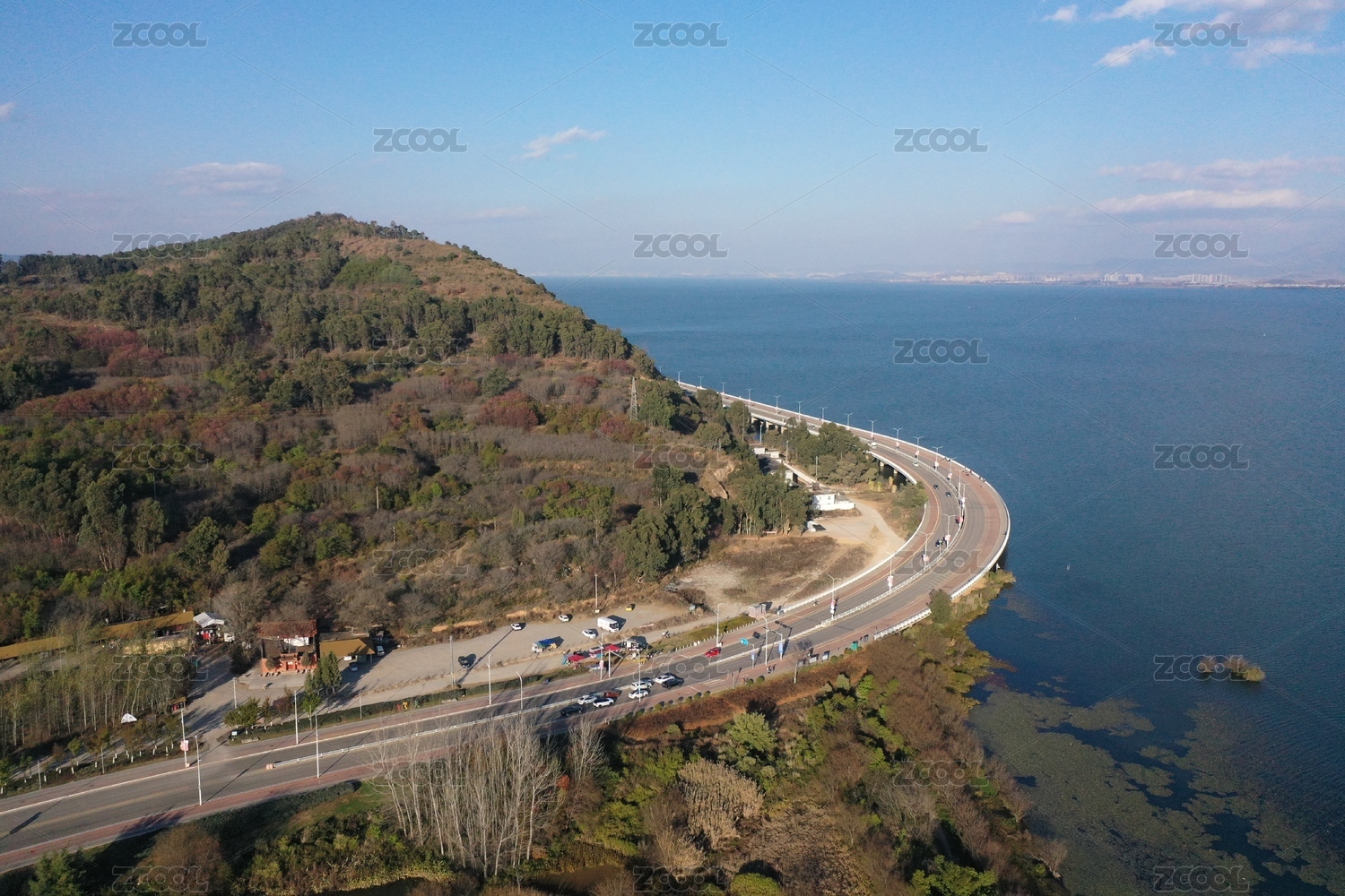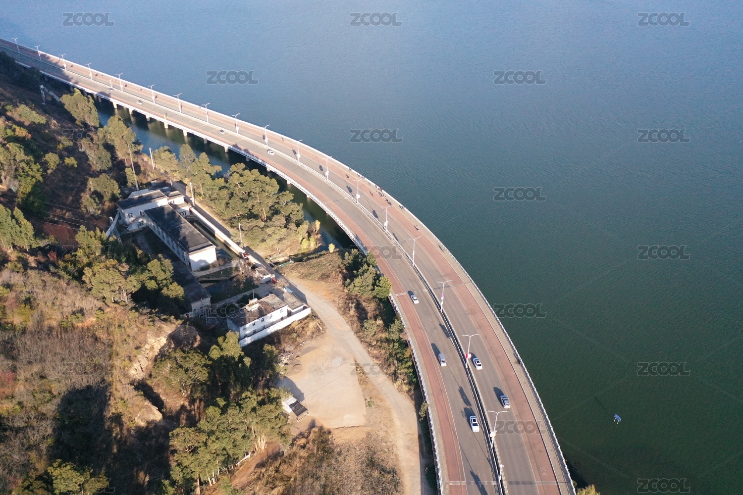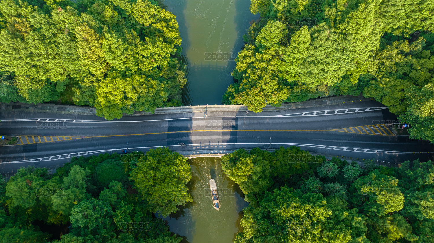 航拍杭州西湖楊公堤最美公路橋隱秀橋與汽車