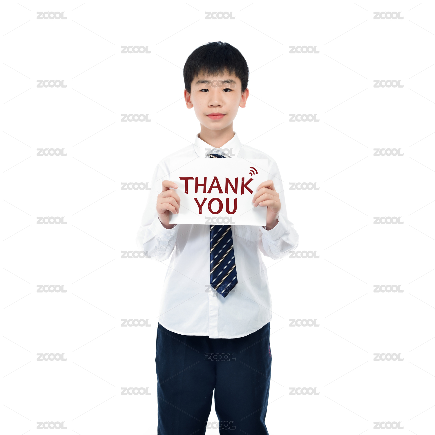 男生舉著感謝的白色牌子