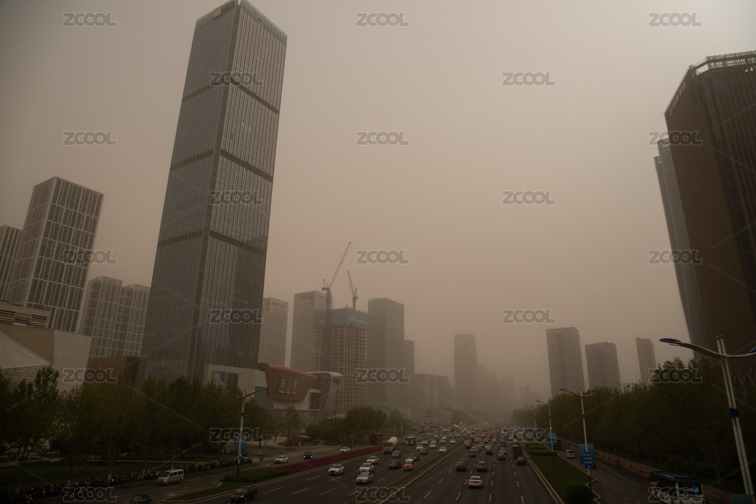 沙塵暴天氣下的北京城市CBD