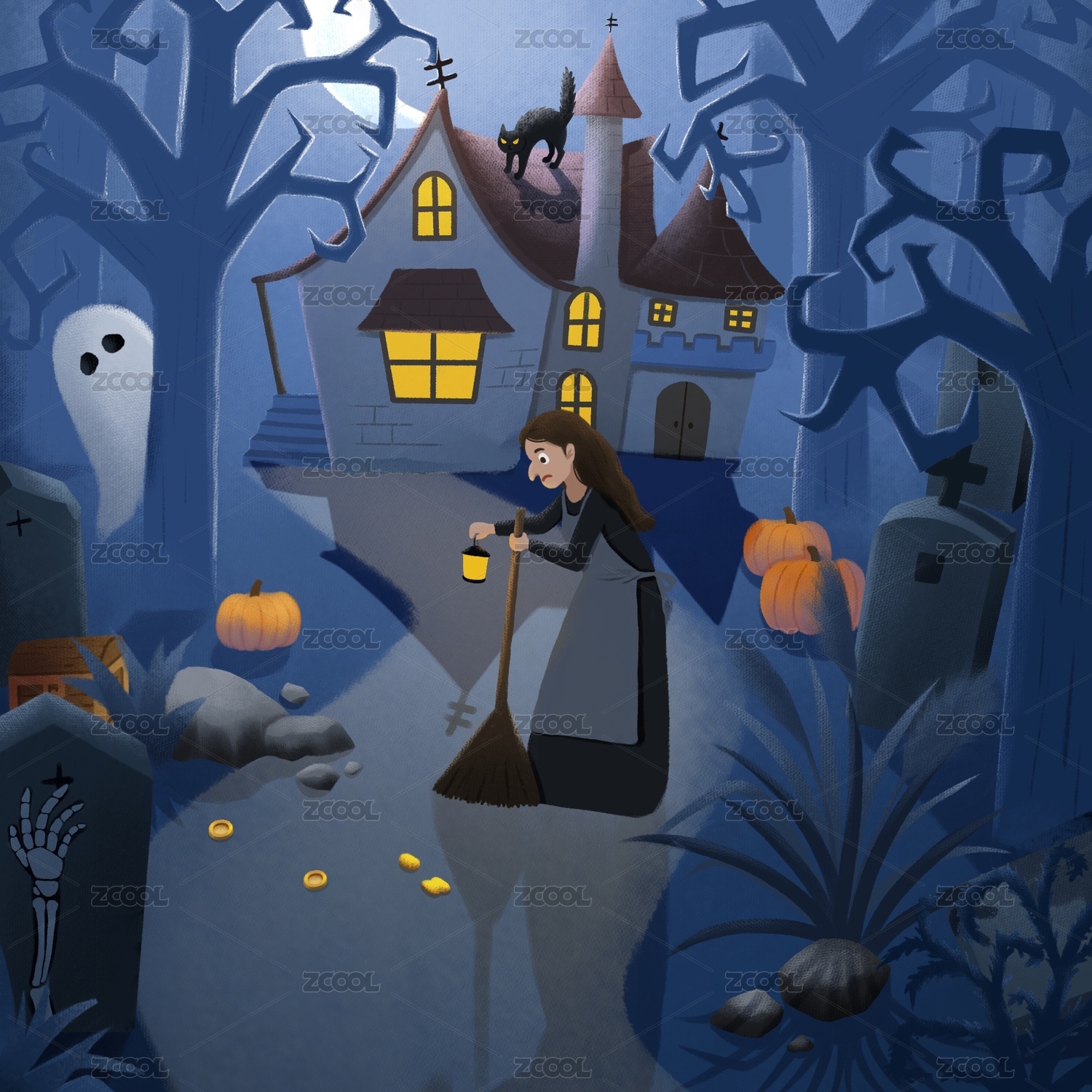 歐美風(fēng)兒童插畫萬(wàn)圣節(jié)