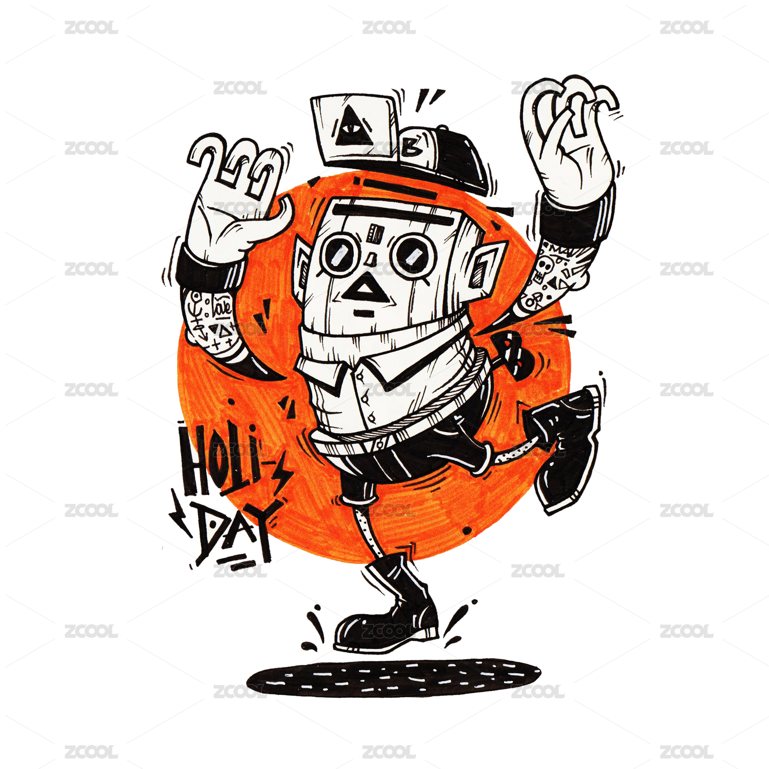 時(shí)尚卡通美式潮流怪誕風(fēng)生肖兔子擬人插畫