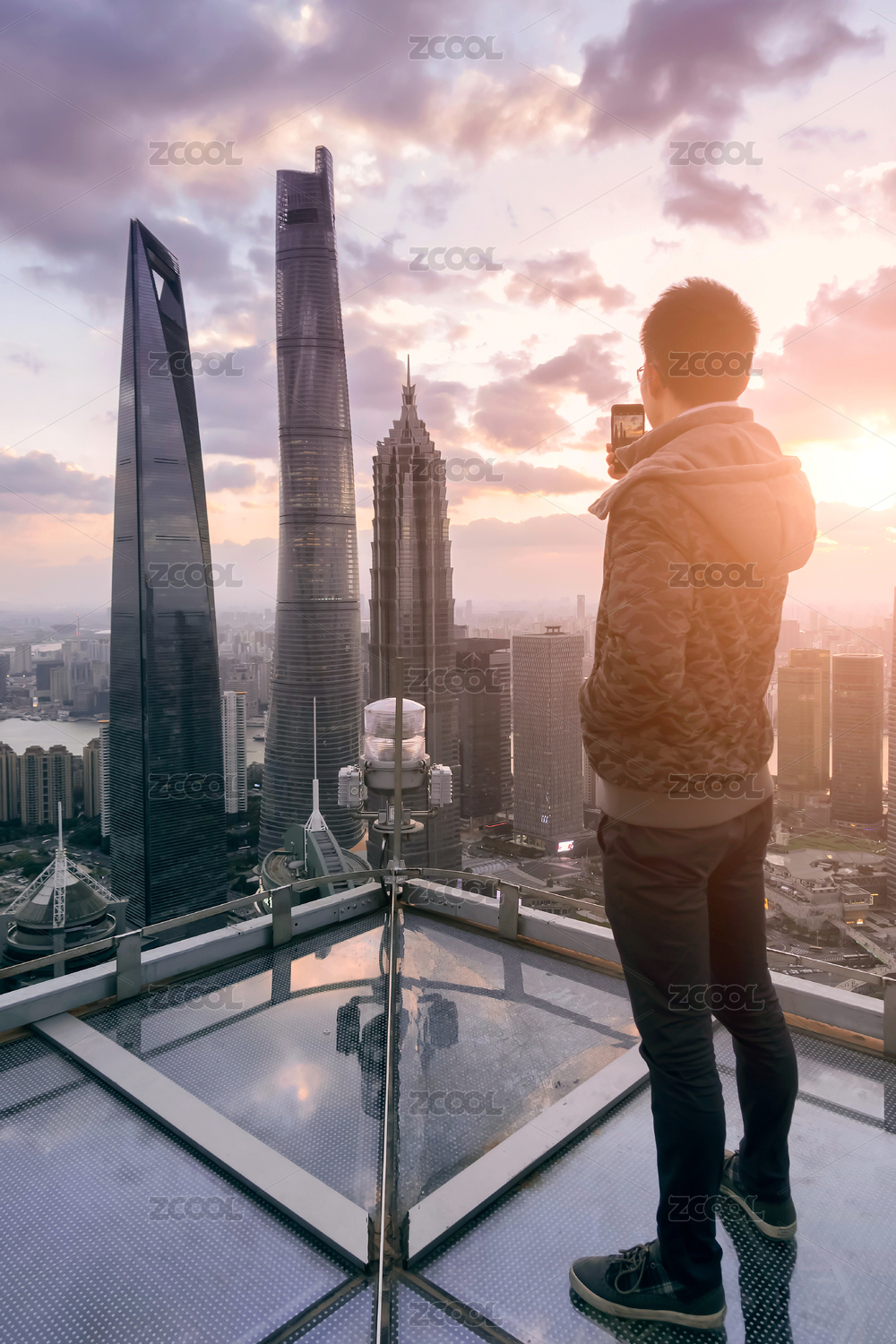 攝影師在高樓屋頂拍攝城市風(fēng)光